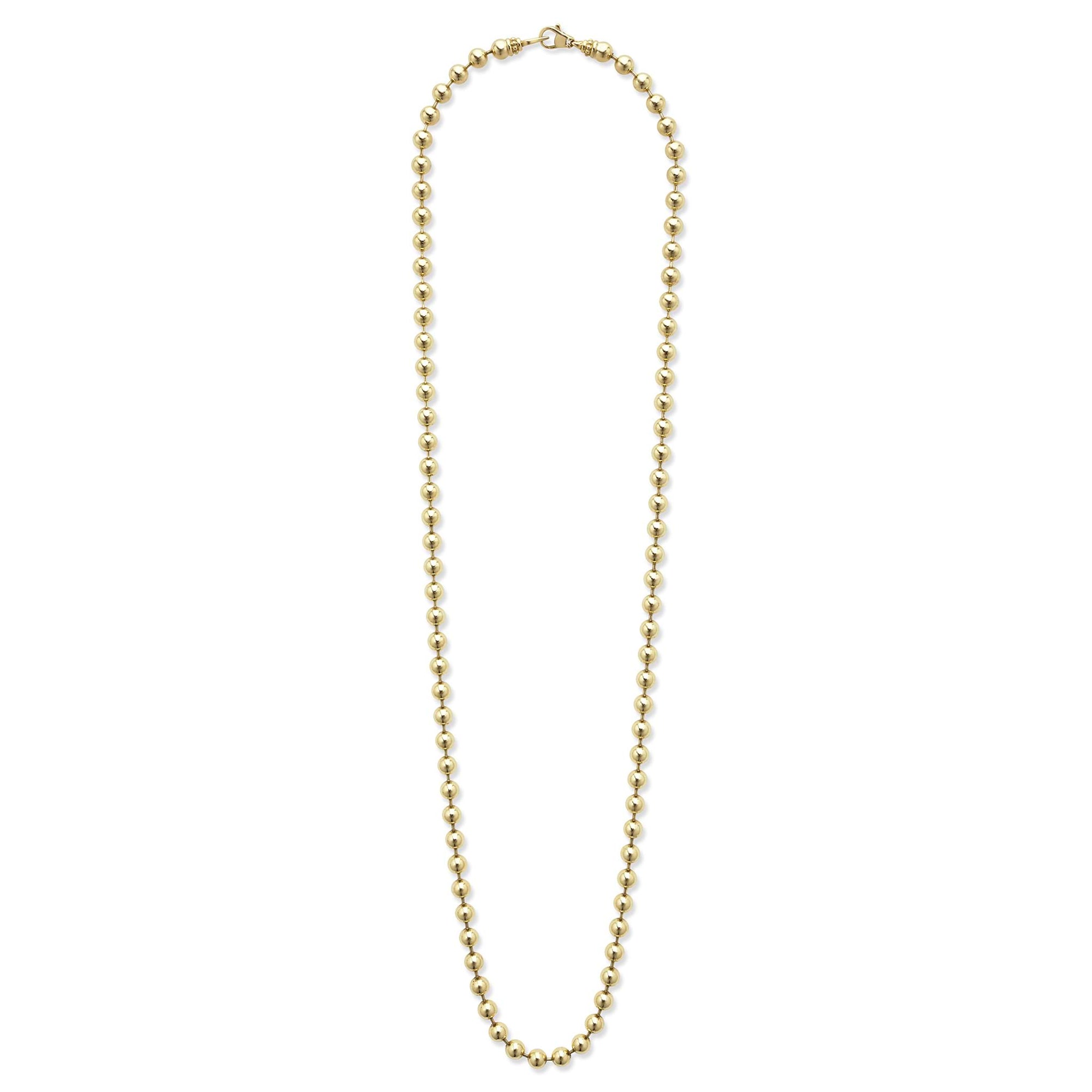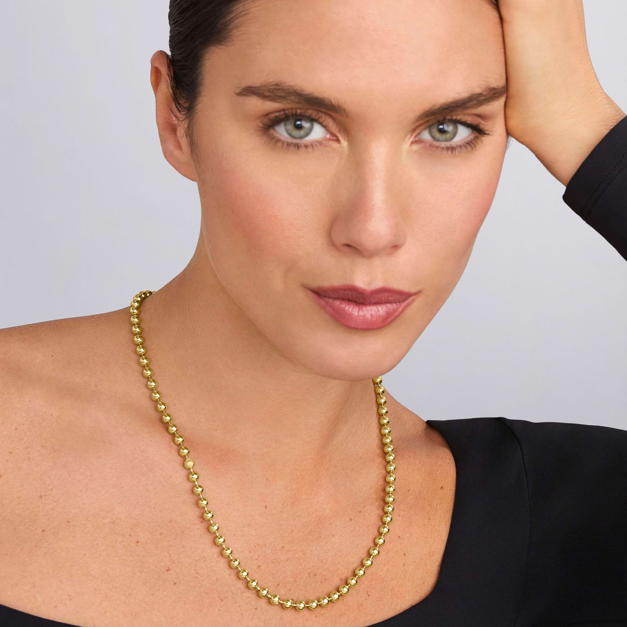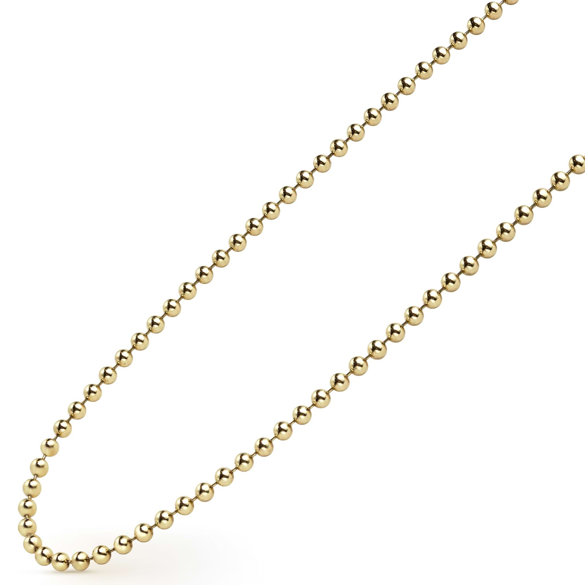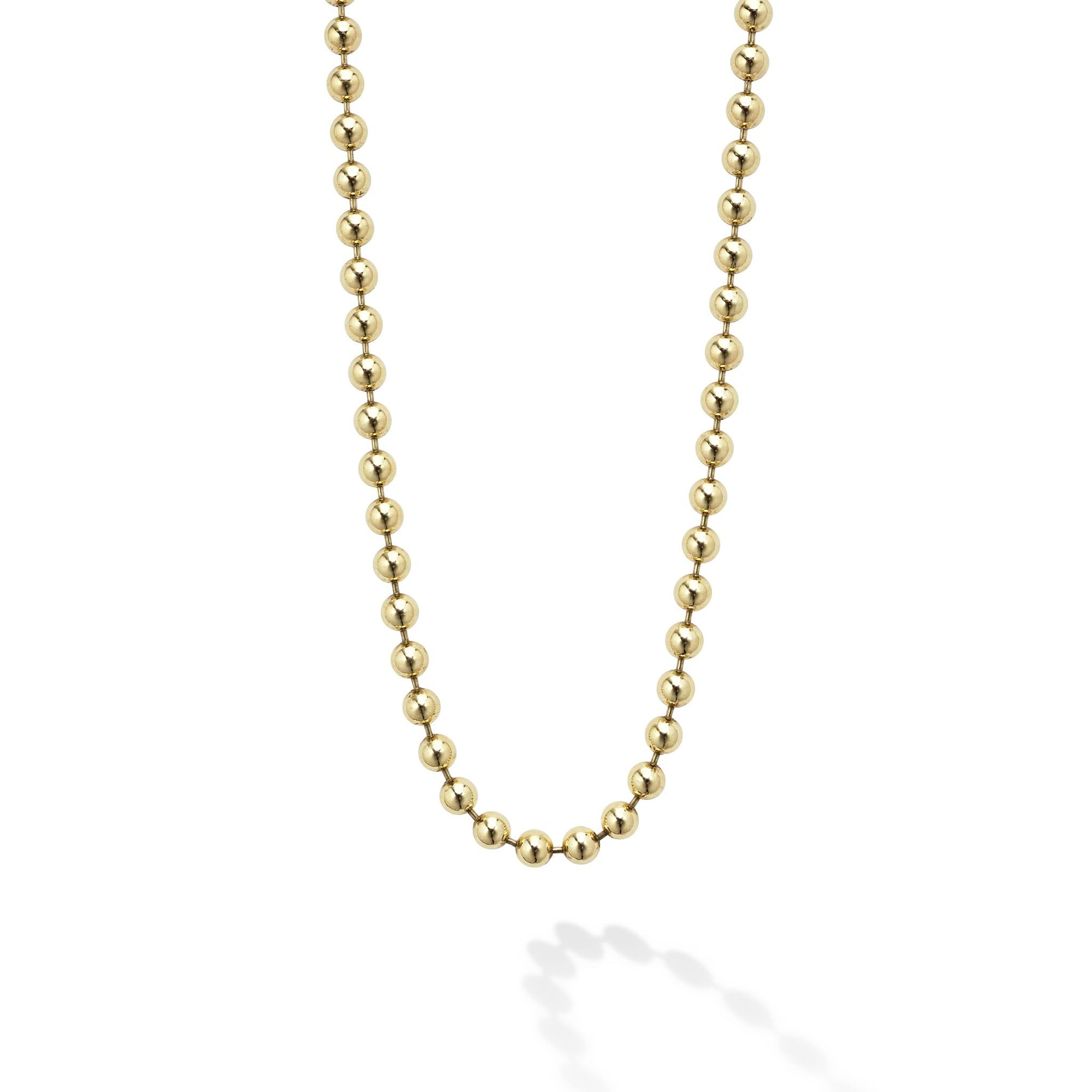 18K gold ball chain necklace finished on a signature lobster clasp. Length available in 20, 22, 24, and 26 inches.