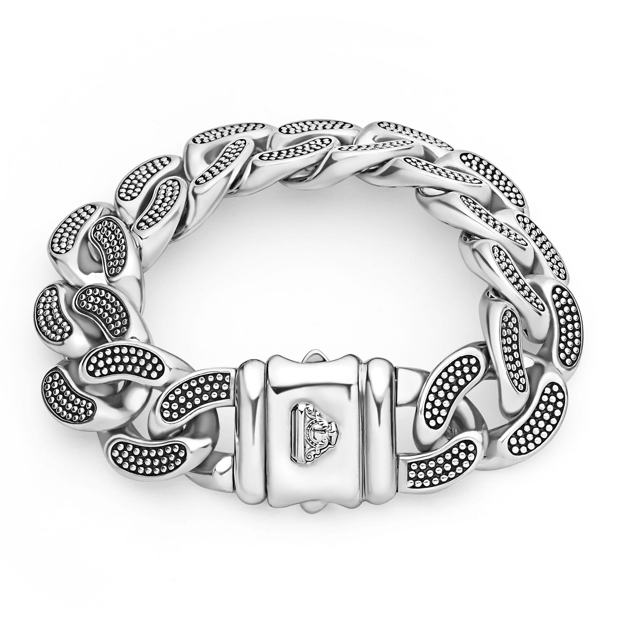 Sterling silver Caviar beading forms this 19mm curb link bracelet.