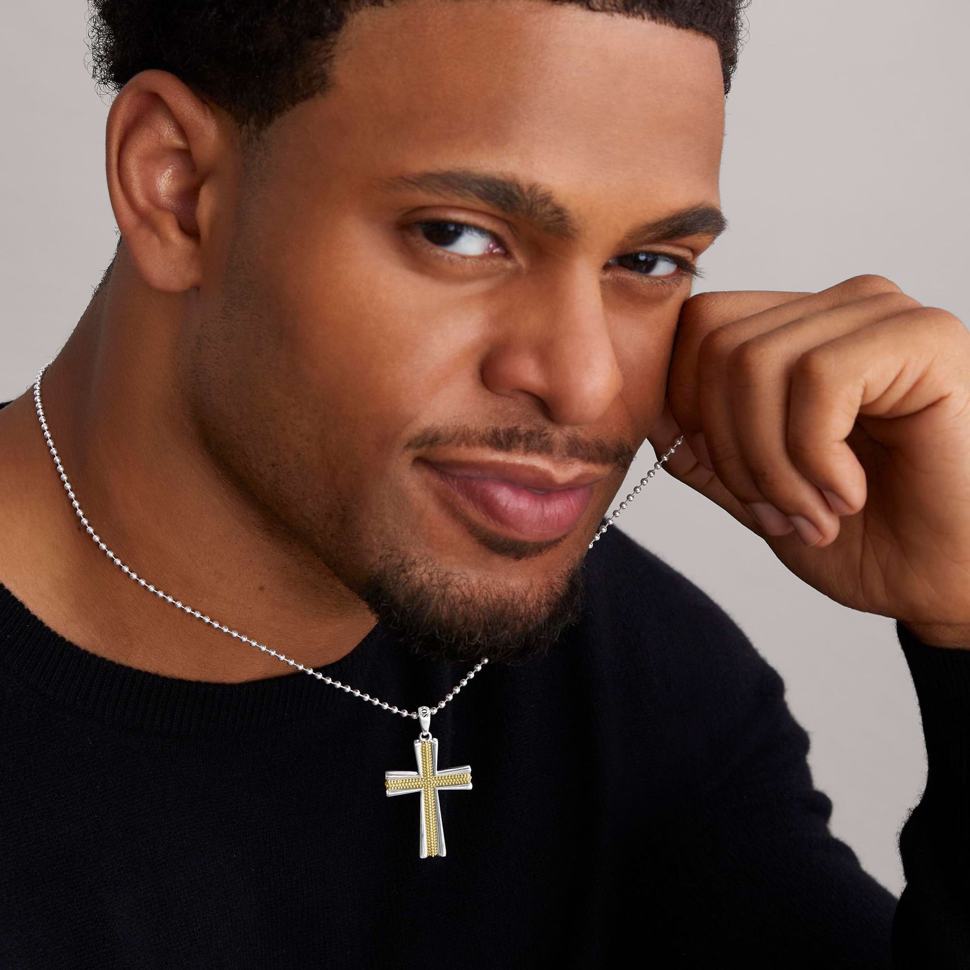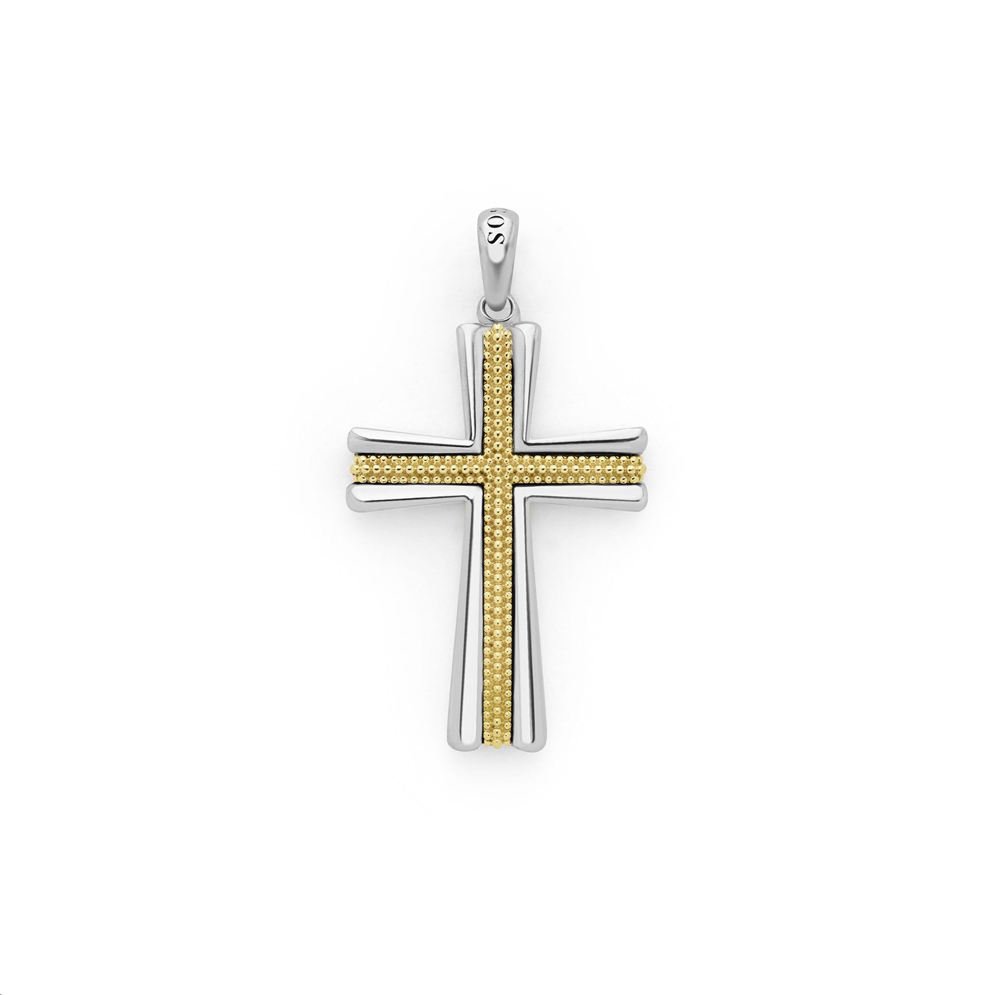 18K gold Caviar beading surrounded by sterling silver form this cross amulet.