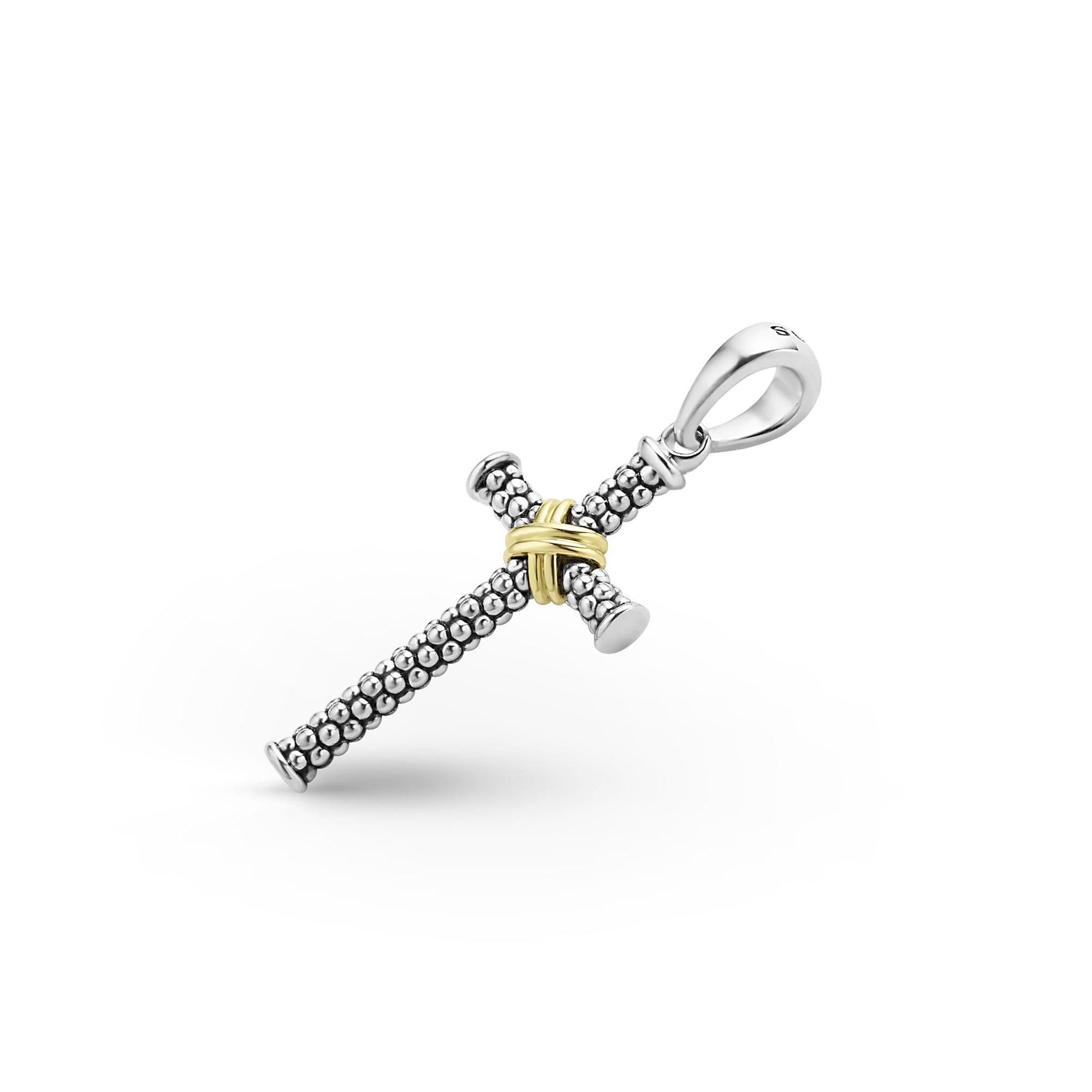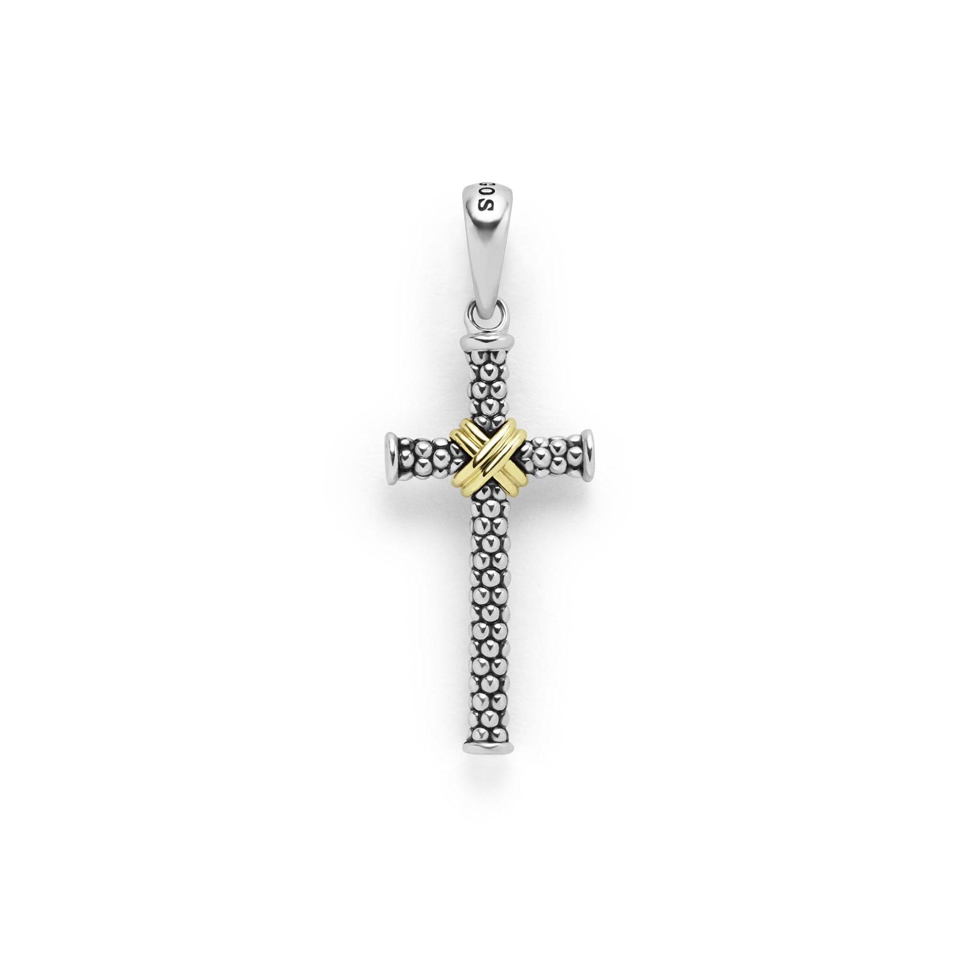 18K gold and sterling silver Caviar beading form this two tone cross amulet.