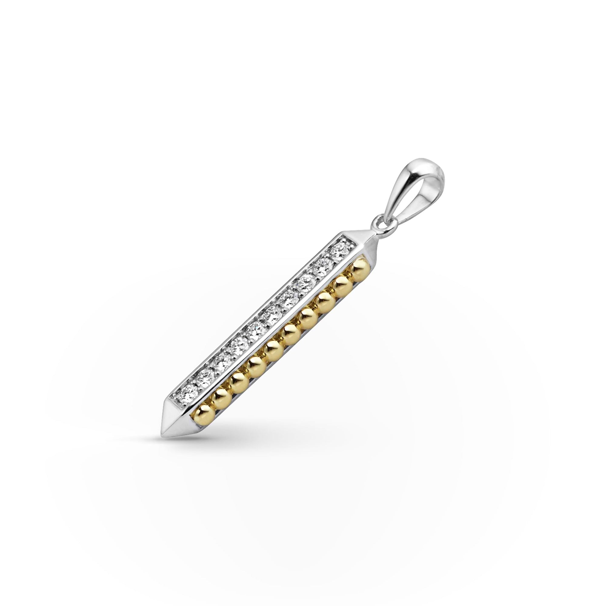 Diamonds surrounded by 18K gold Caviar beading forms this amulet.