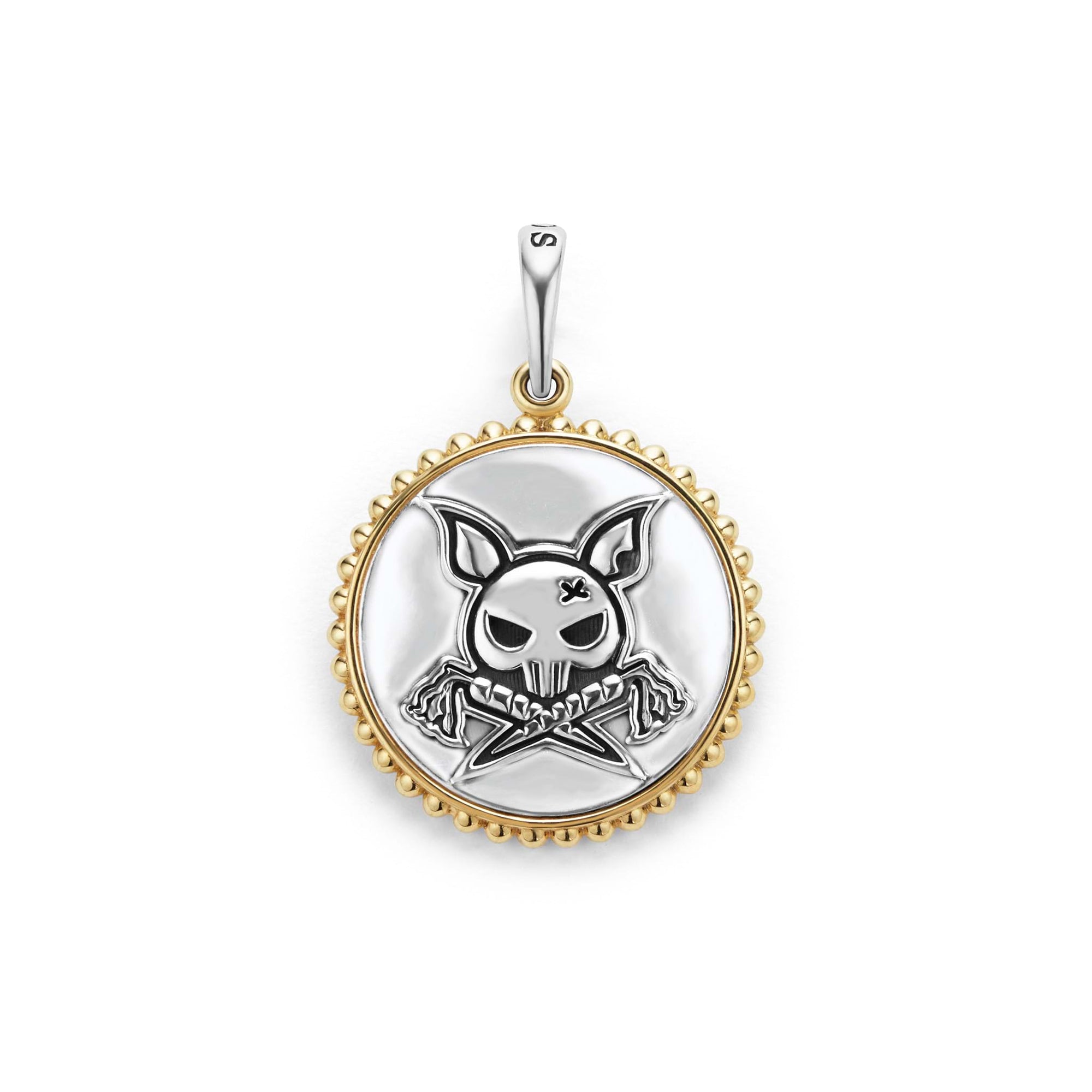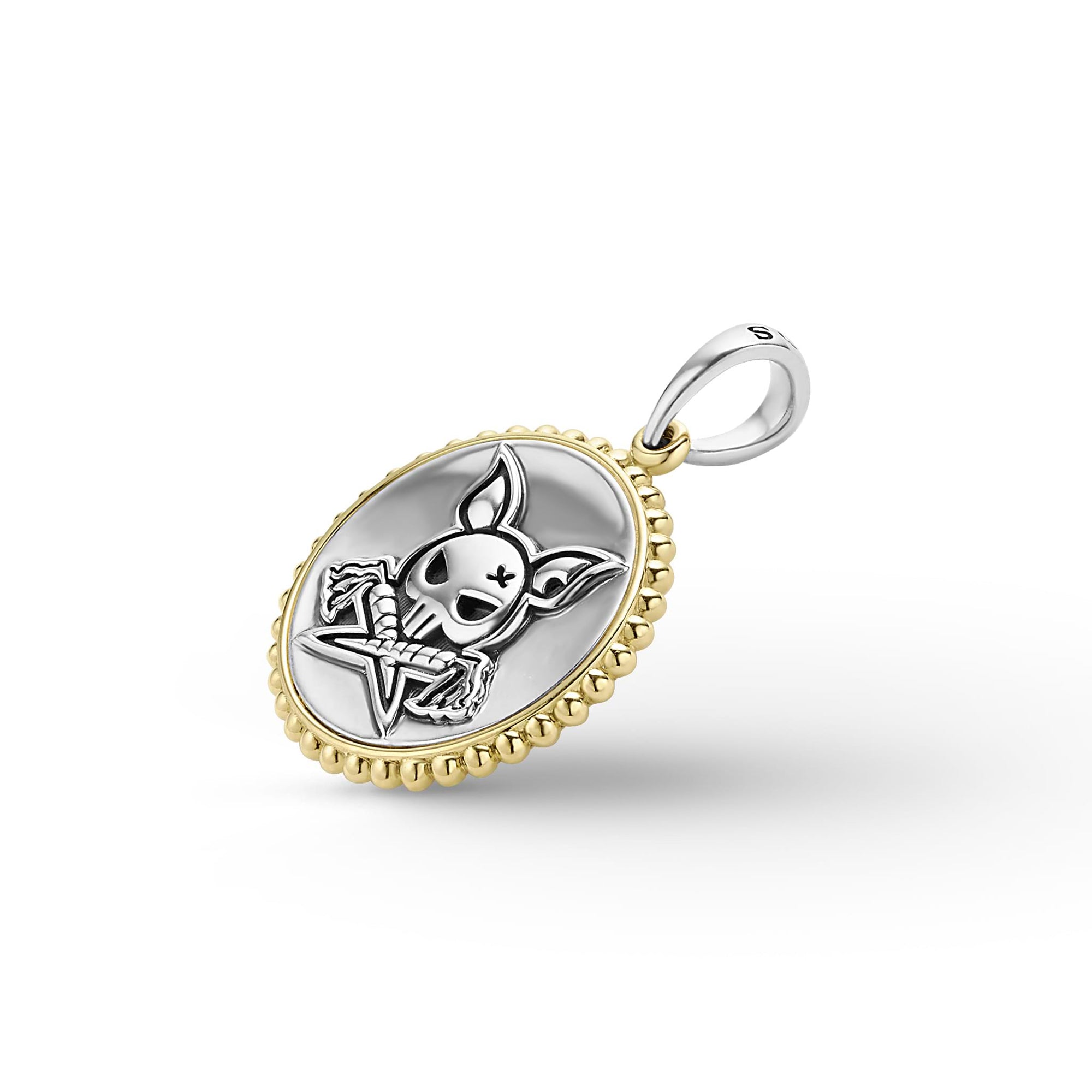 18K gold and sterling silver Caviar beading form this two tone Krunch amulet. Embodying the spirit of the LAGOS man, Krunch signifies courage, strength, and luck.