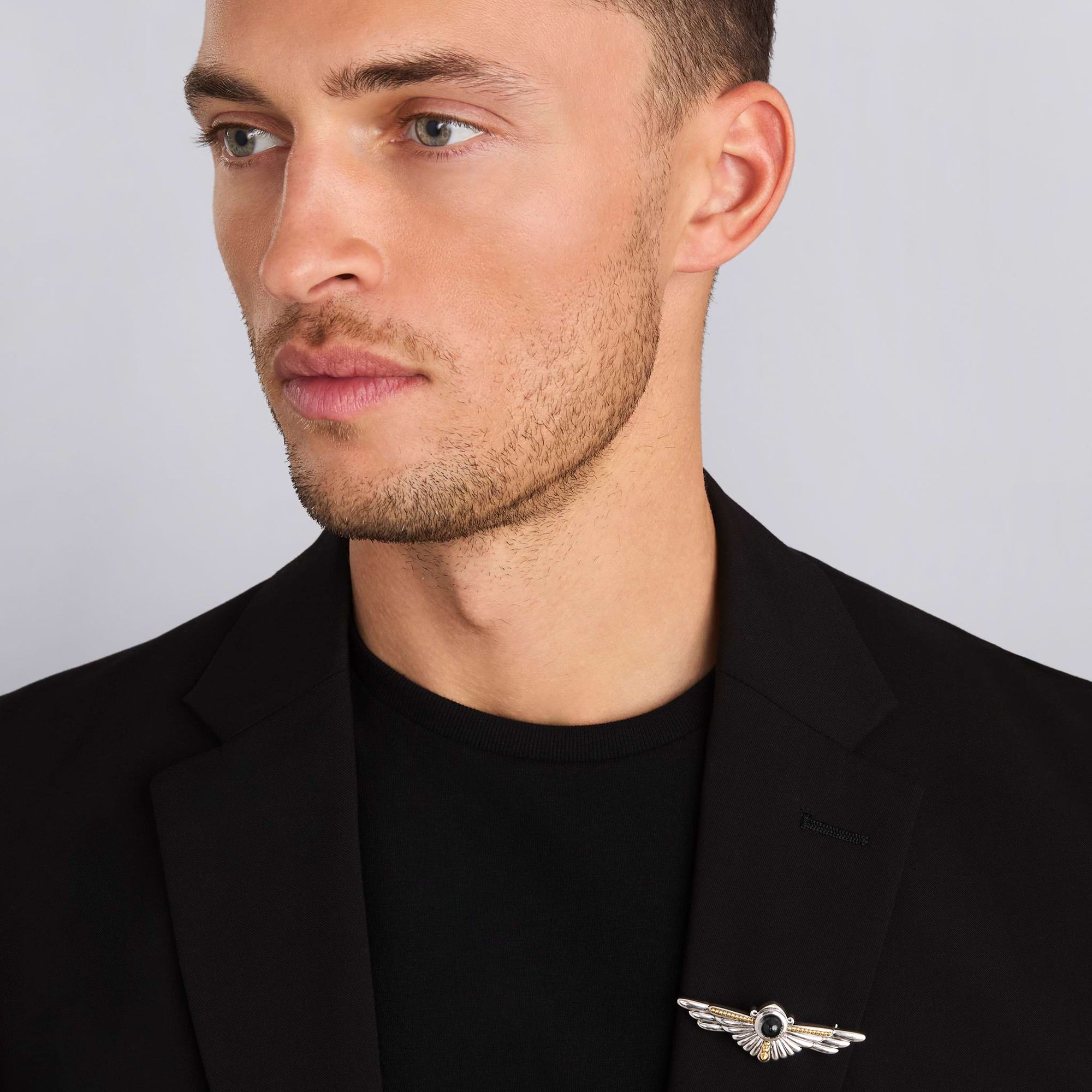 Onyx gemstone and sterling silver accented by 18K gold Caviar beading forms this wing statement pin.