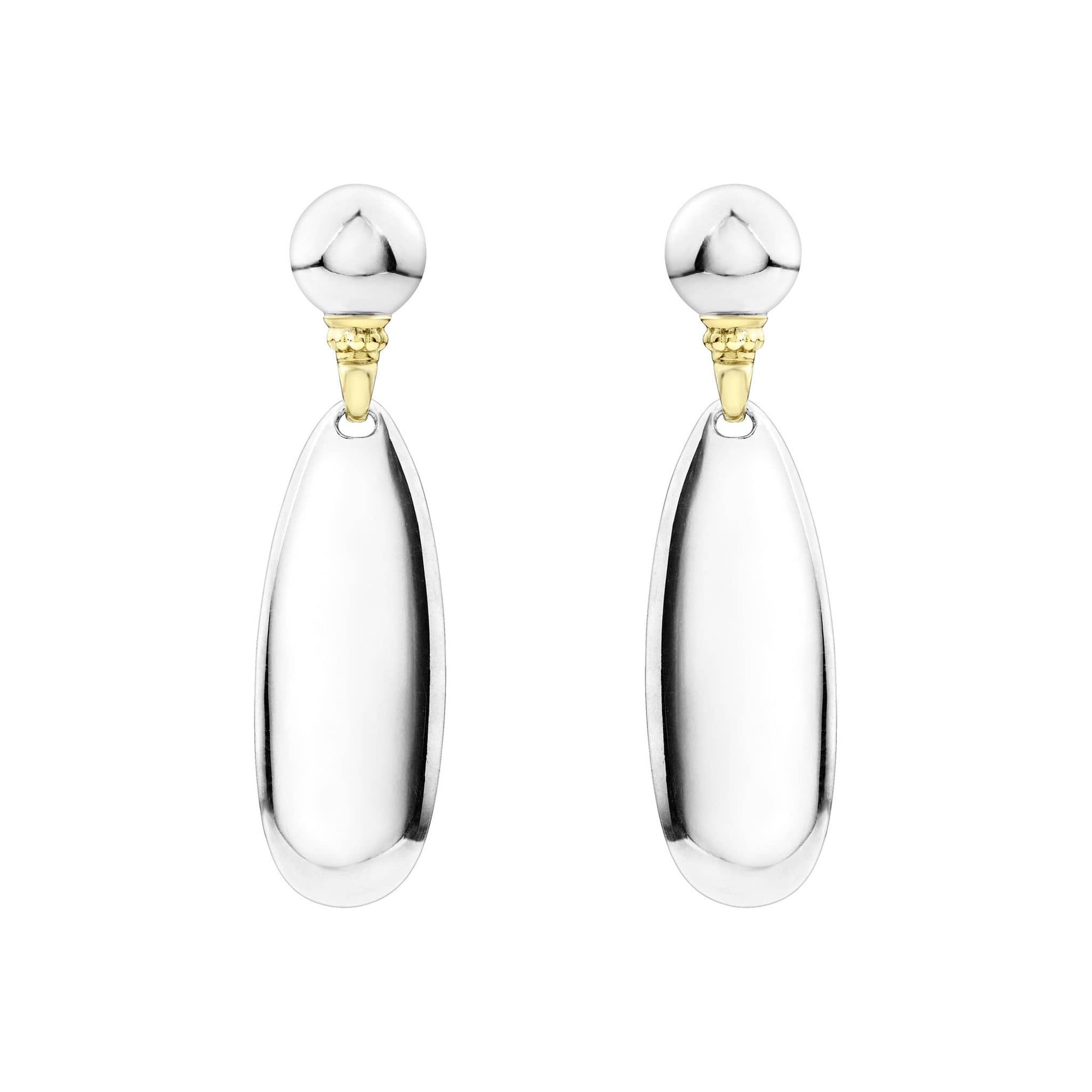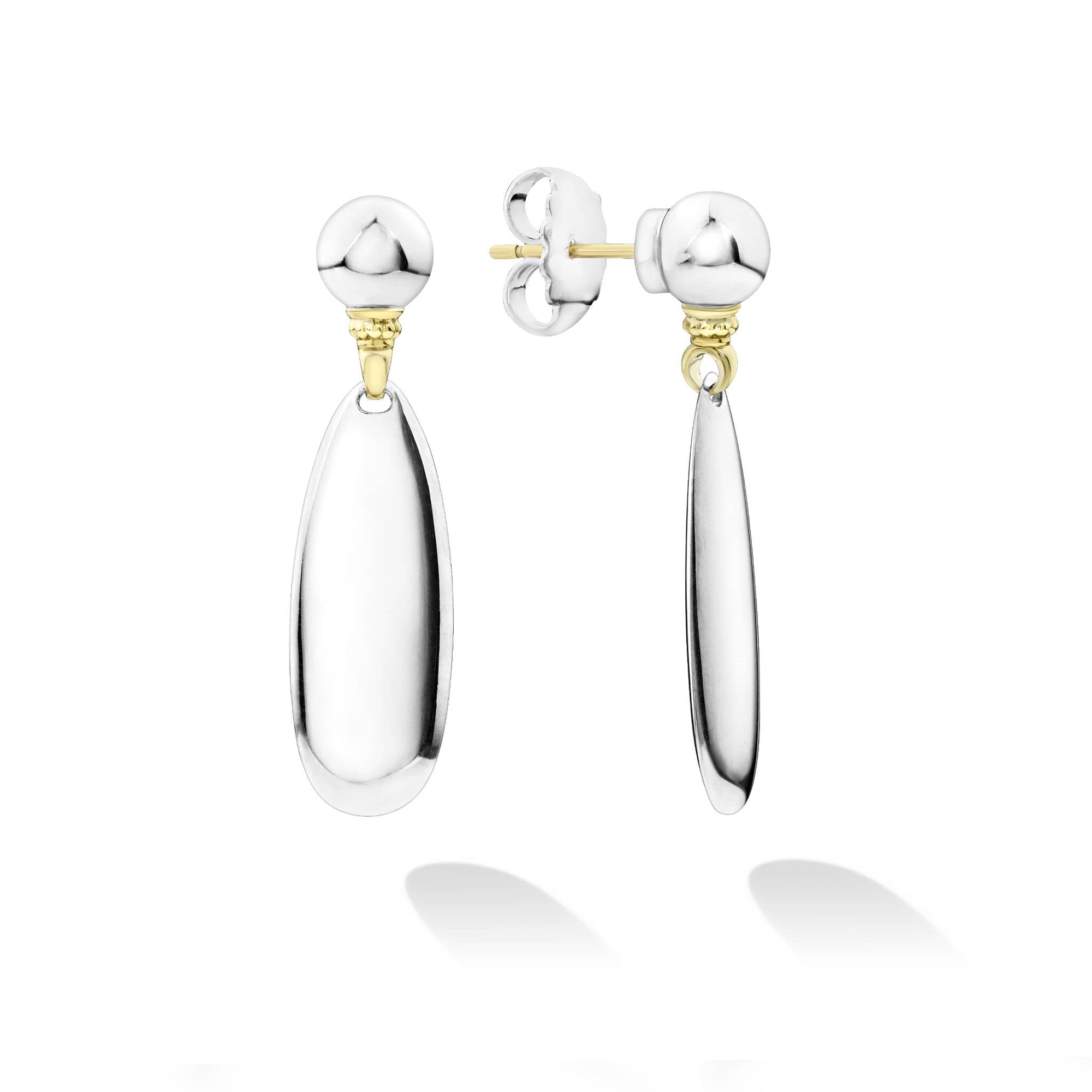 Highly polished sterling silver drop earrings with 18K gold Caviar accents.