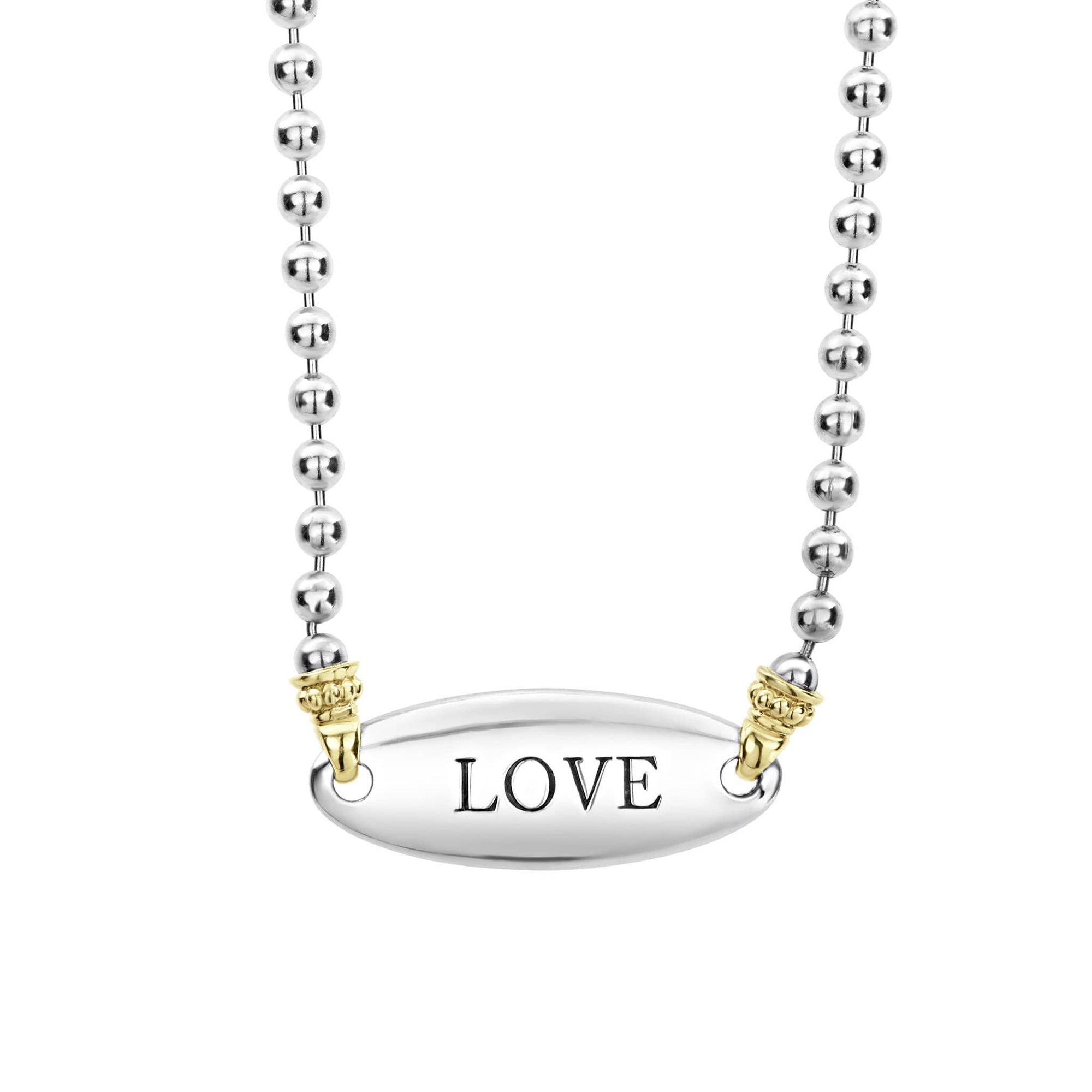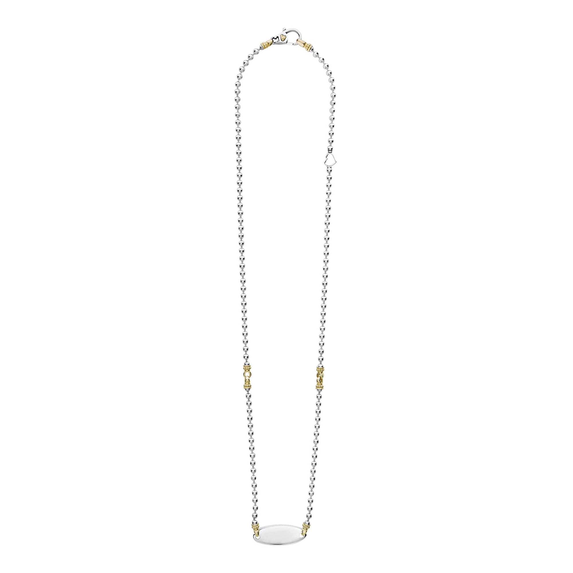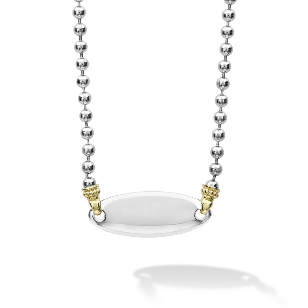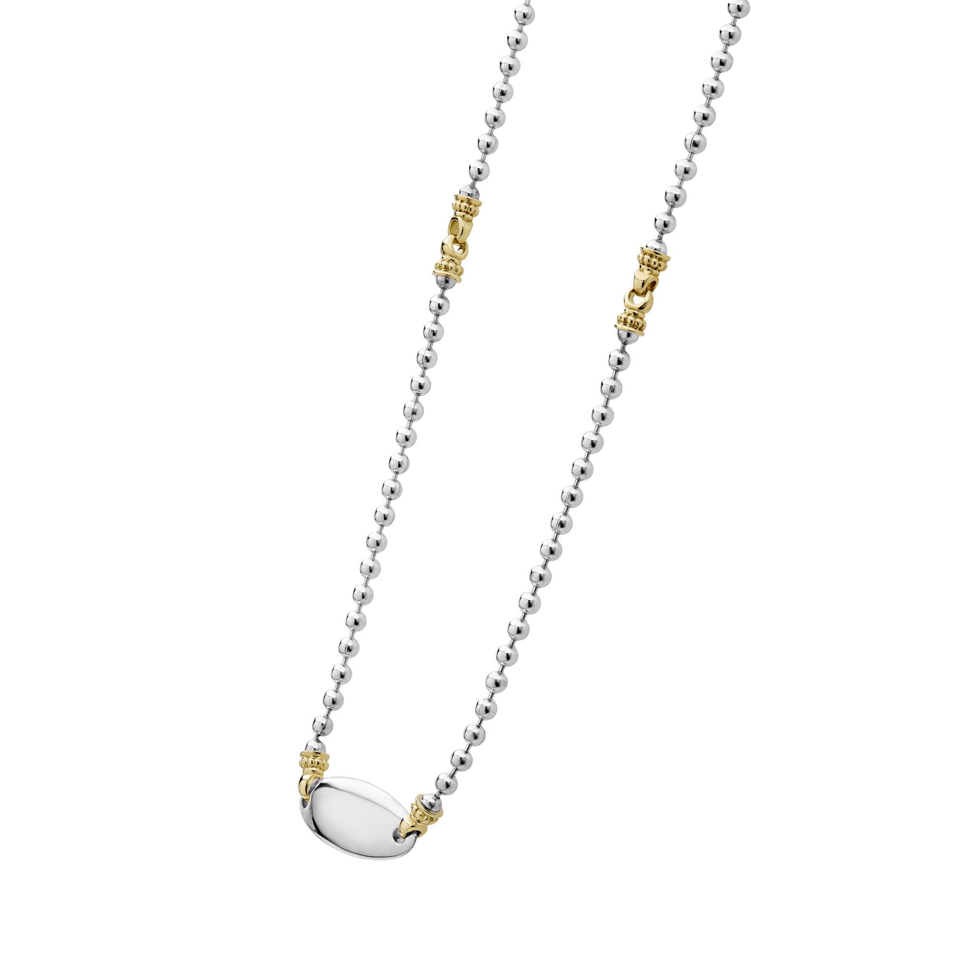 Highly polished sterling silver necklace with 18K gold beading. Ideal for a modern initial or classic monogram.