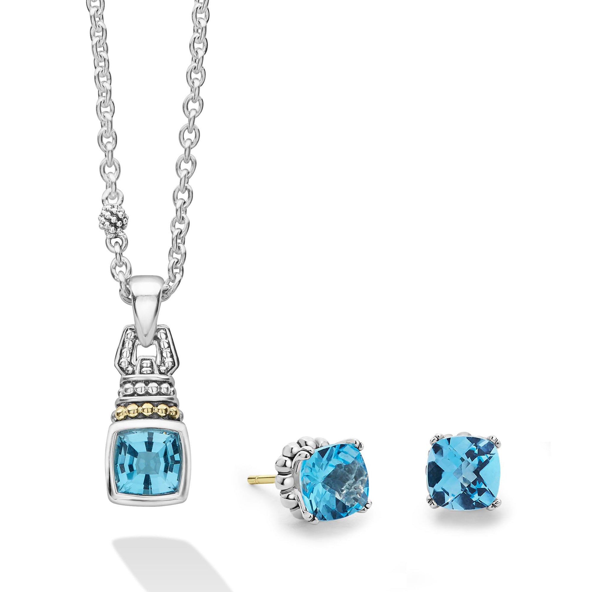 A LAGOS exclusive. An ideal gift set of two swiss blue topaz gemstone Caviar pieces that can be paired perfectly together or worn on their own.