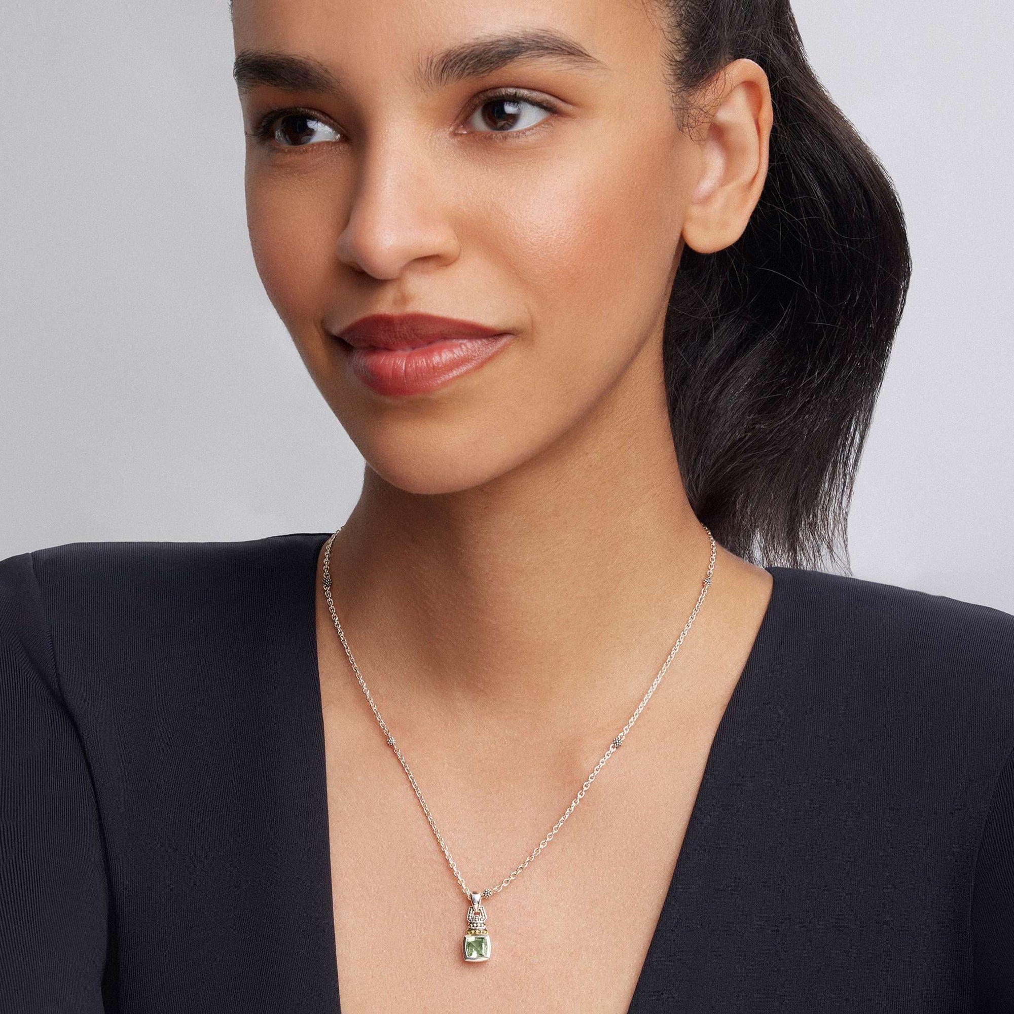 Prasiolite gemstone drop pendant necklace with 18K gold and sterling Caviar beading. Necklace adjusts from 16 to 18 inches for added versatility.