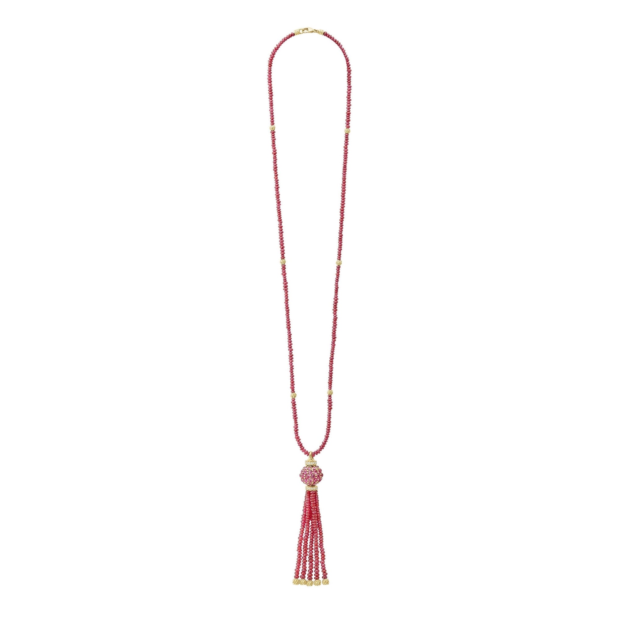 Caviar Gold Ruby and Diamond Tassel Pendant Necklace