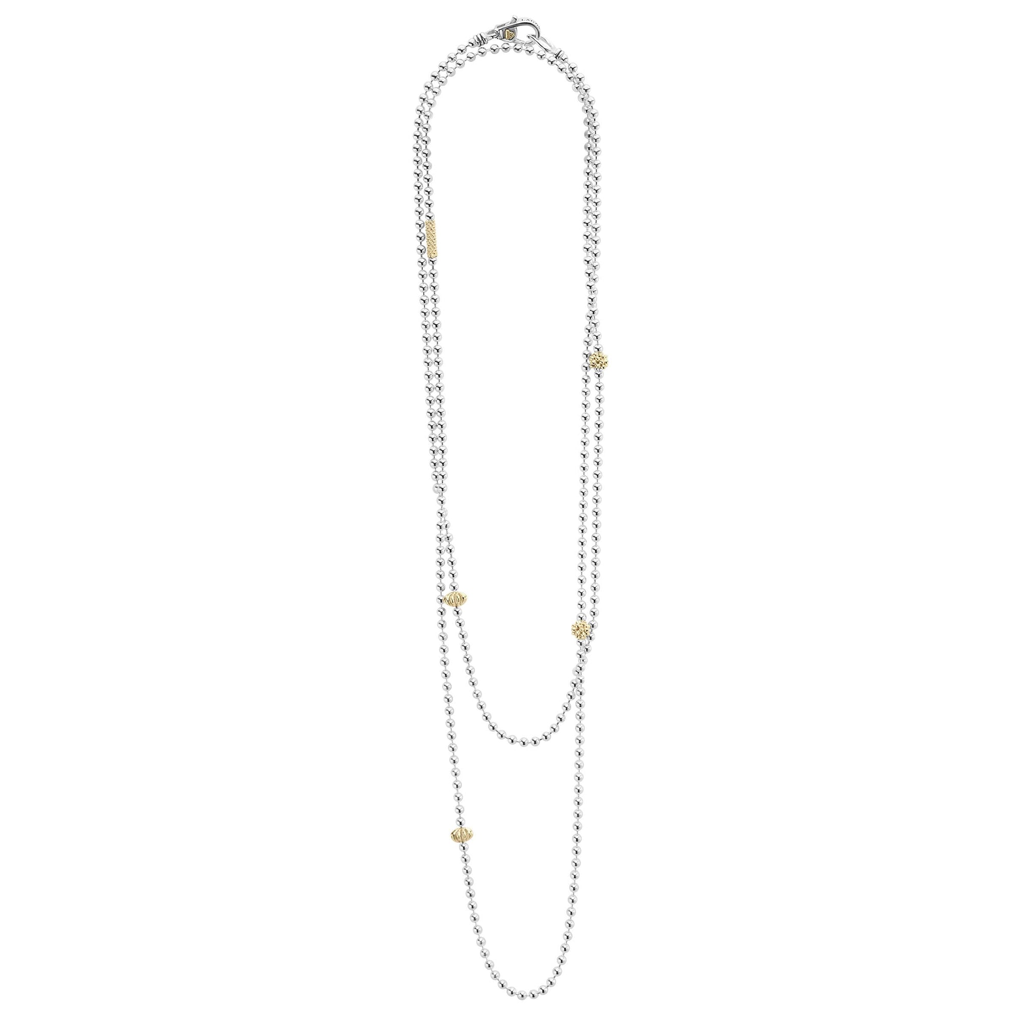 Sterling silver necklace with 18K gold Caviar beading and fluted accents. Ideal to style with various necklaces for a unique look.