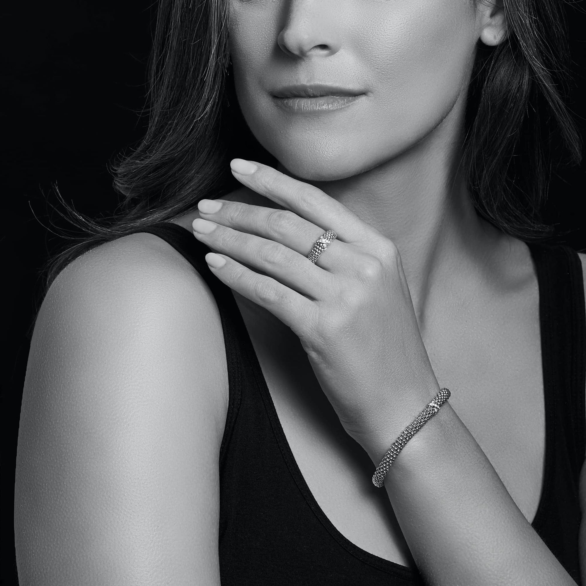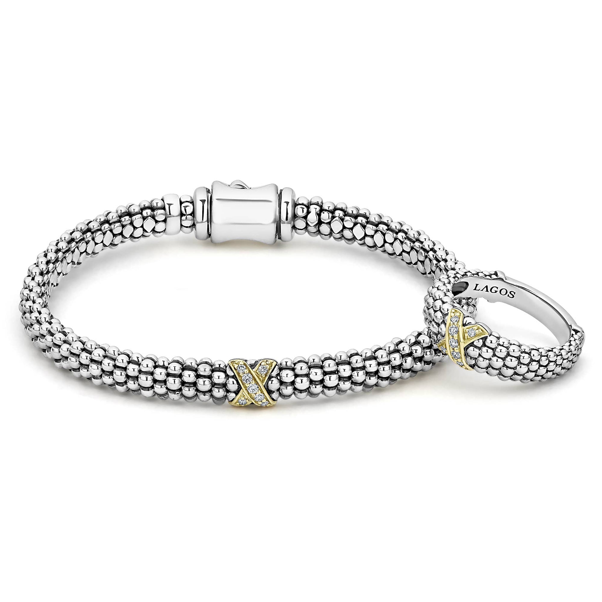 A LAGOS exclusive. Pavé diamonds framed by 18K gold and sterling silver beading form both pieces in this gift set. Bracelets is size Medium and ring is size 7. LAGOS diamonds are the highest quality natural stones.