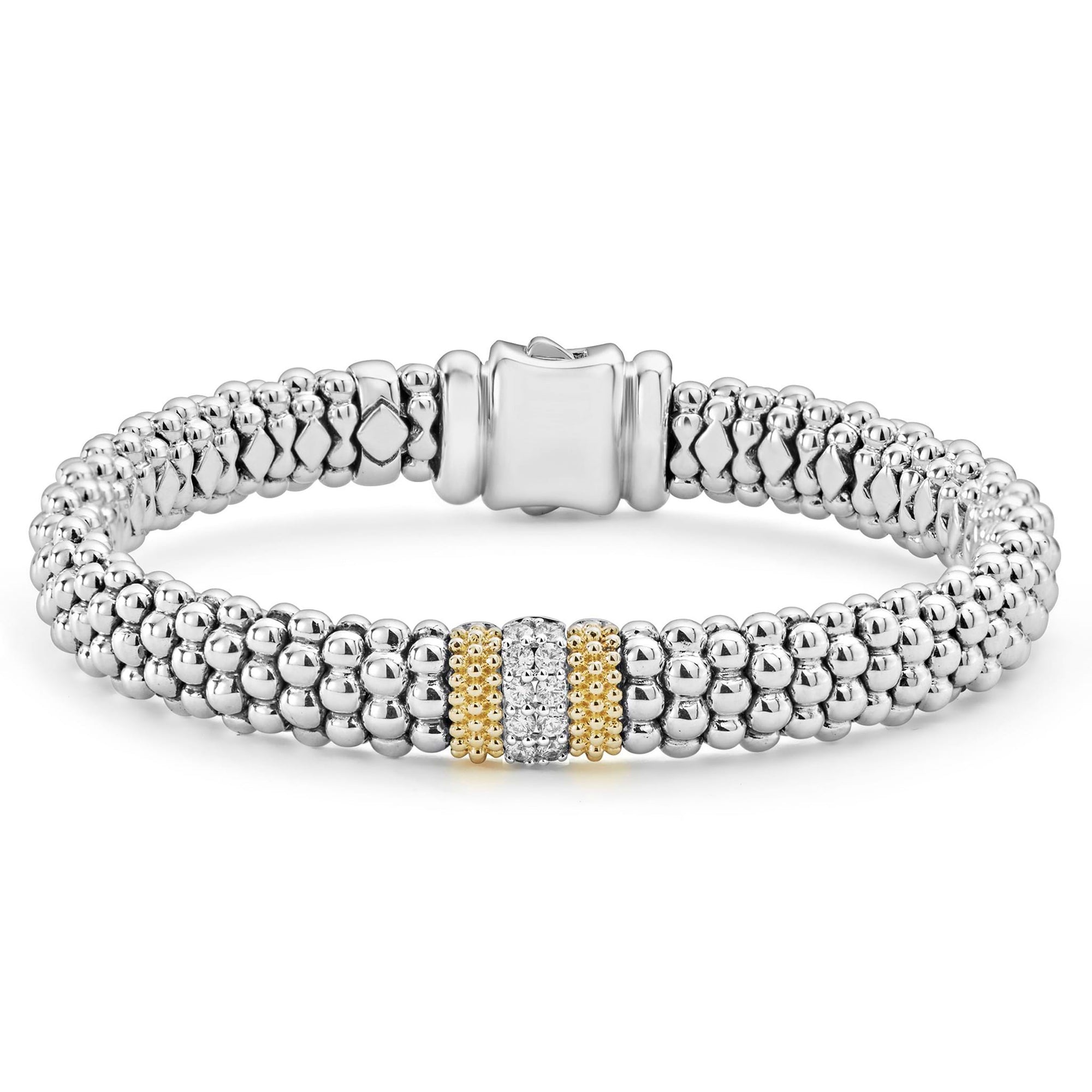 Set of two 18K gold, sterling silver, and diamond bracelets that complement each other perfectly. LAGOS diamonds are the highest quality natural stones.
