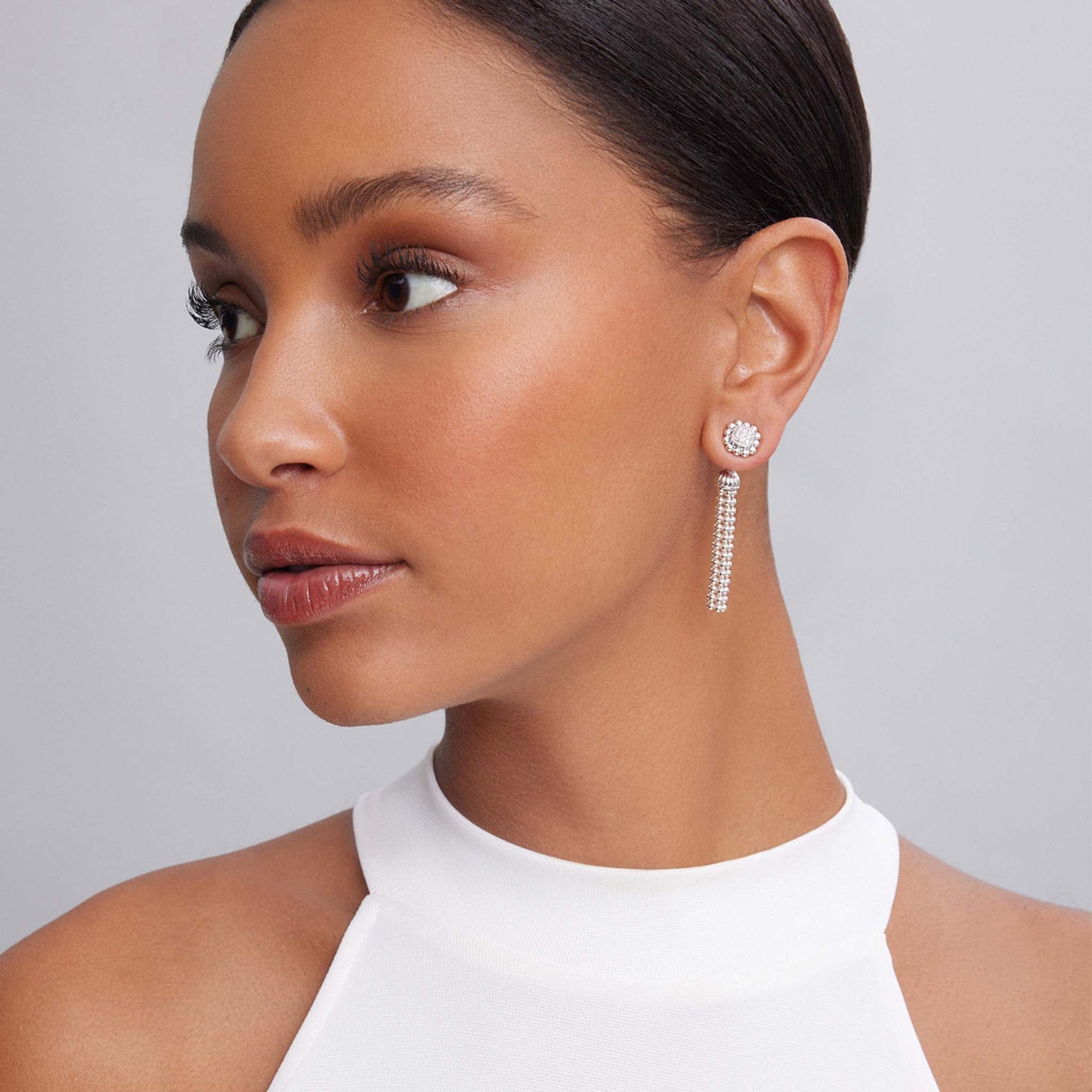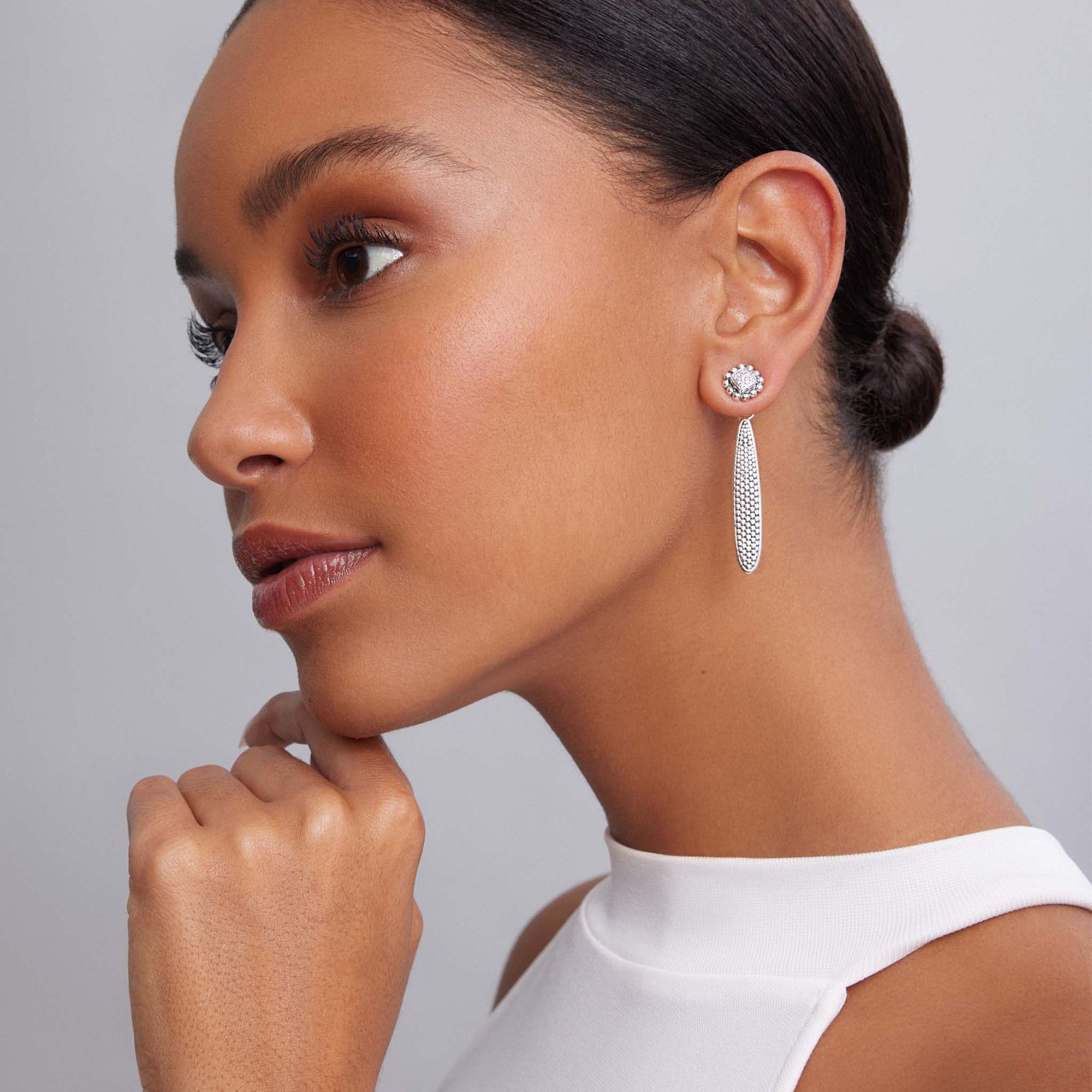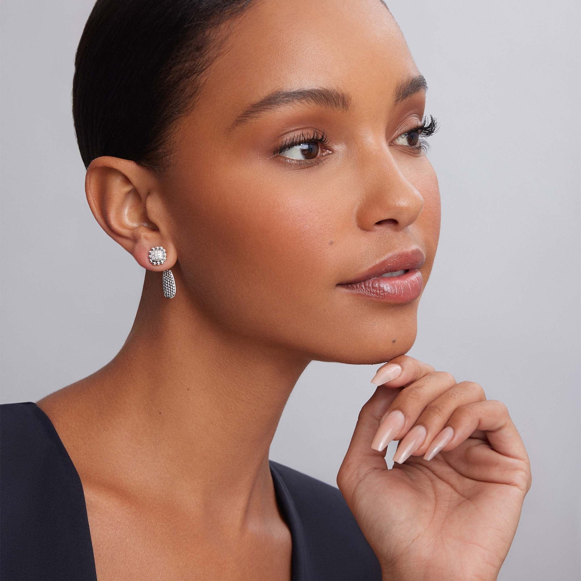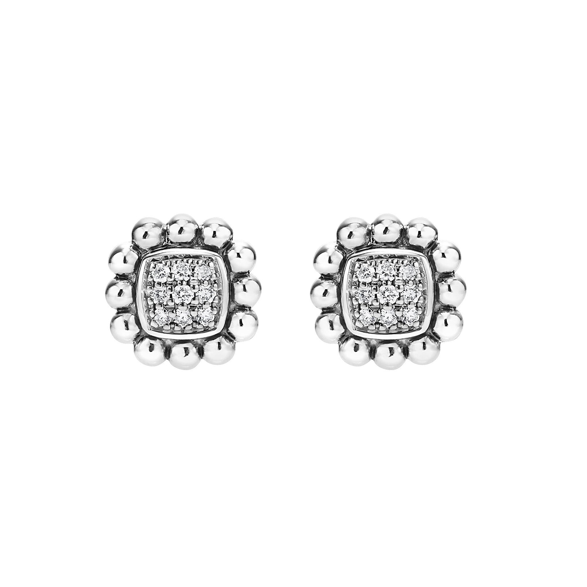 Pavé diamond square stud earrings framed by sterling silver Caviar beading. LAGOS diamonds are the highest quality natural stones.