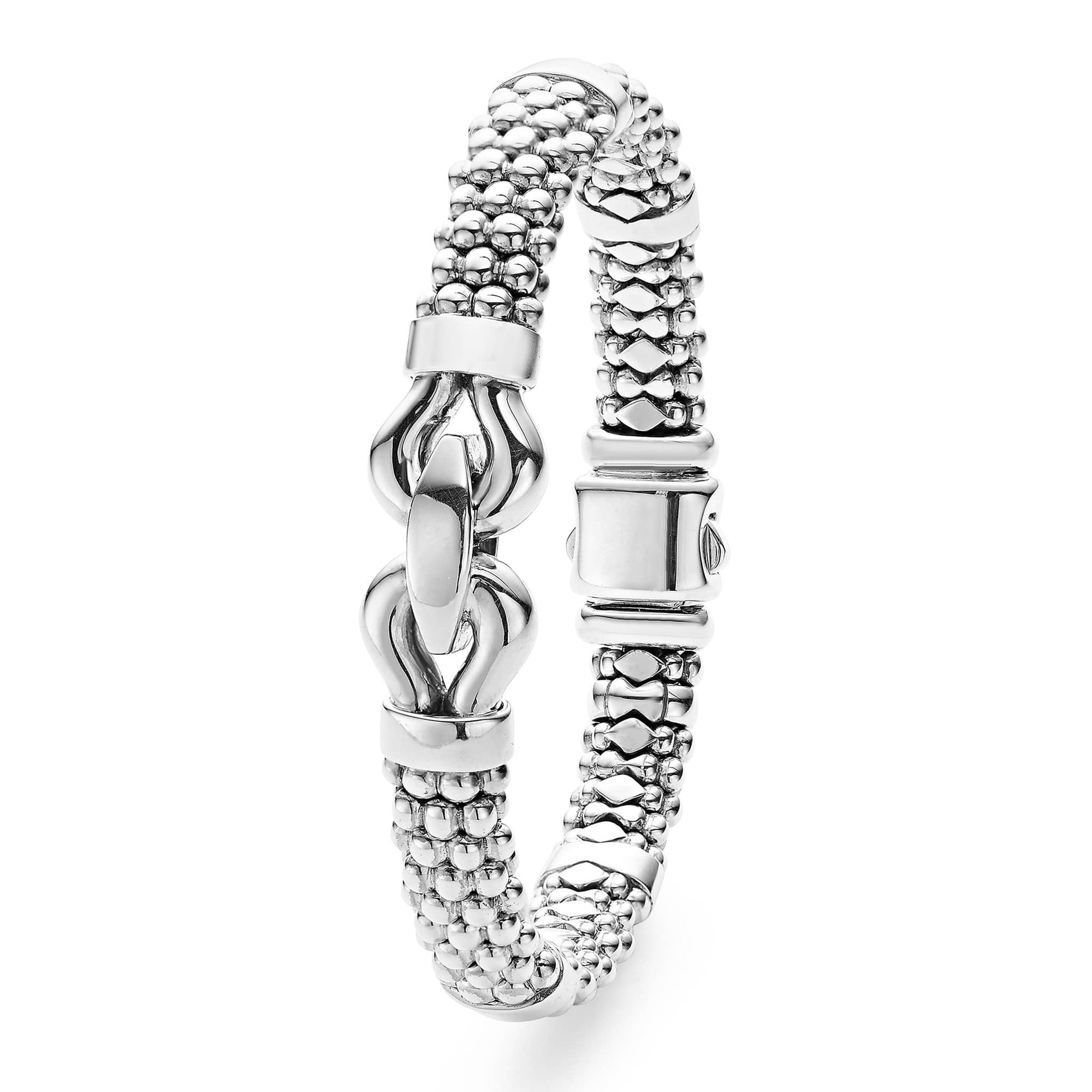 A sterling silver buckle design accents Caviar beading to form this signature bracelet.
