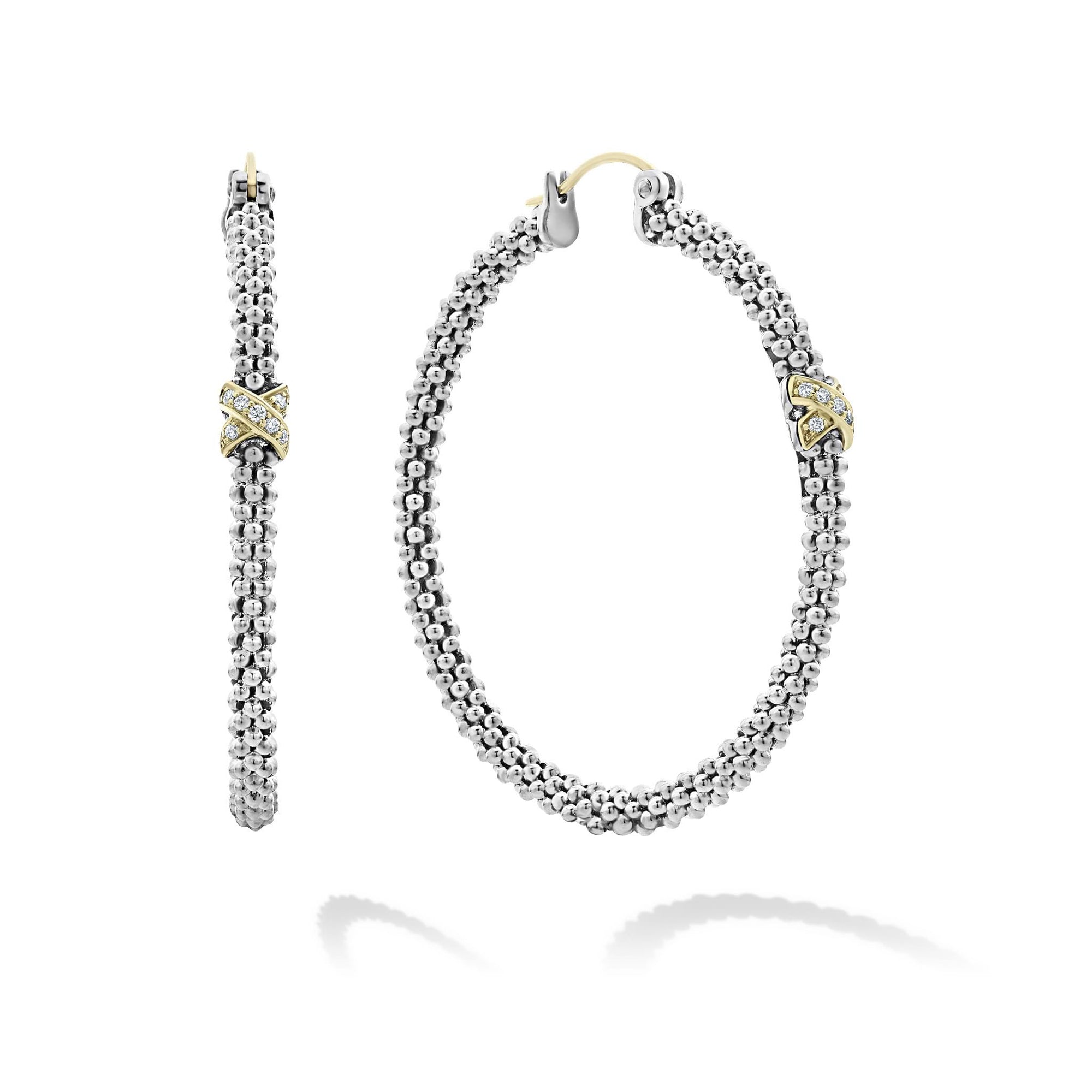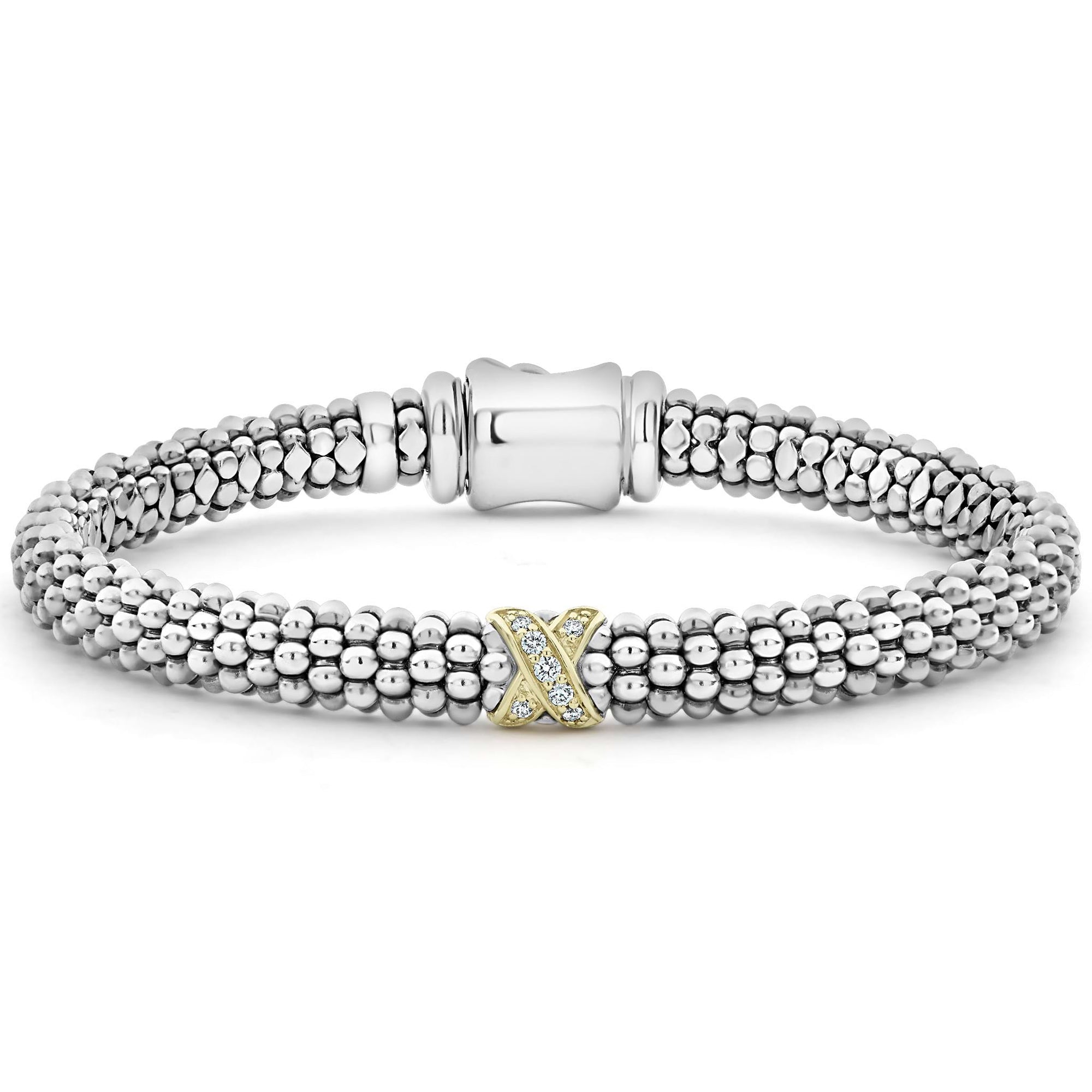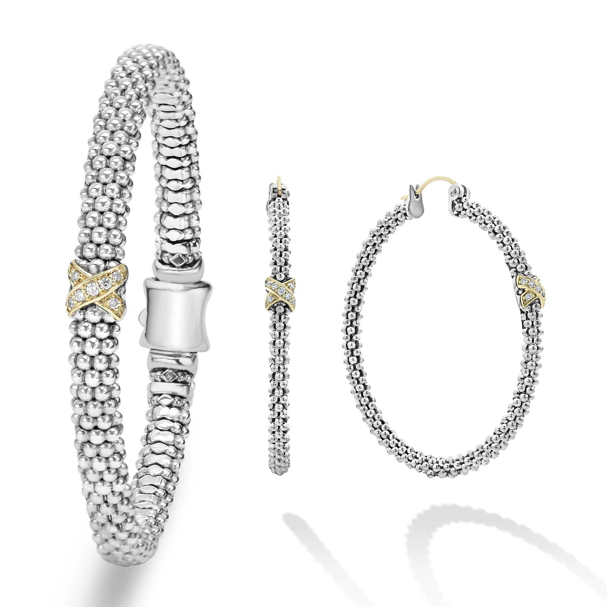 A LAGOS exclusive. Pavé diamonds framed by 18K gold and sterling silver beading form both pieces in this gift set. Perfect to pair together or wear on their own. LAGOS diamonds are the highest quality natural stones.
