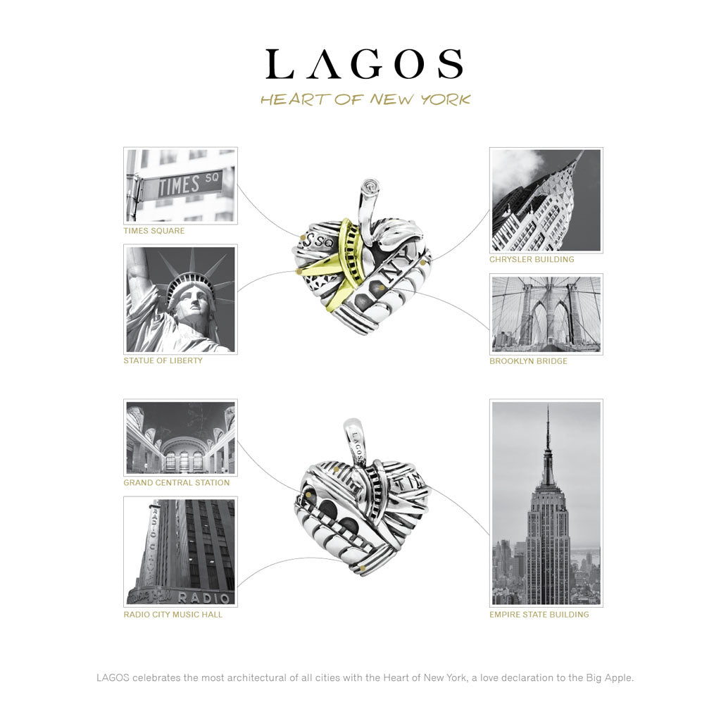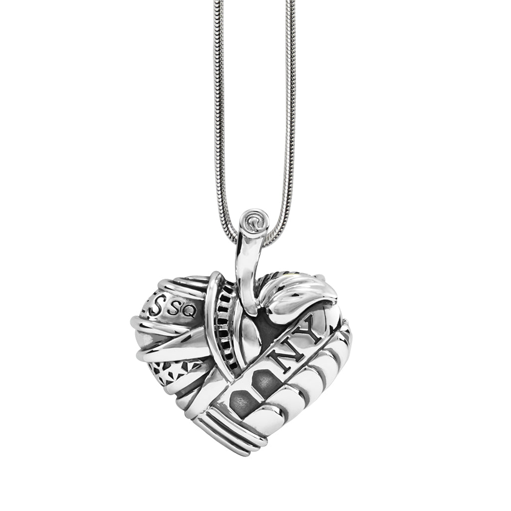 Celebrate the 'Big Apple' with the Empire State Building, the Chrysler Building and Times Square detailed in sterling silver on this large pendant. Finished on a snake chain.