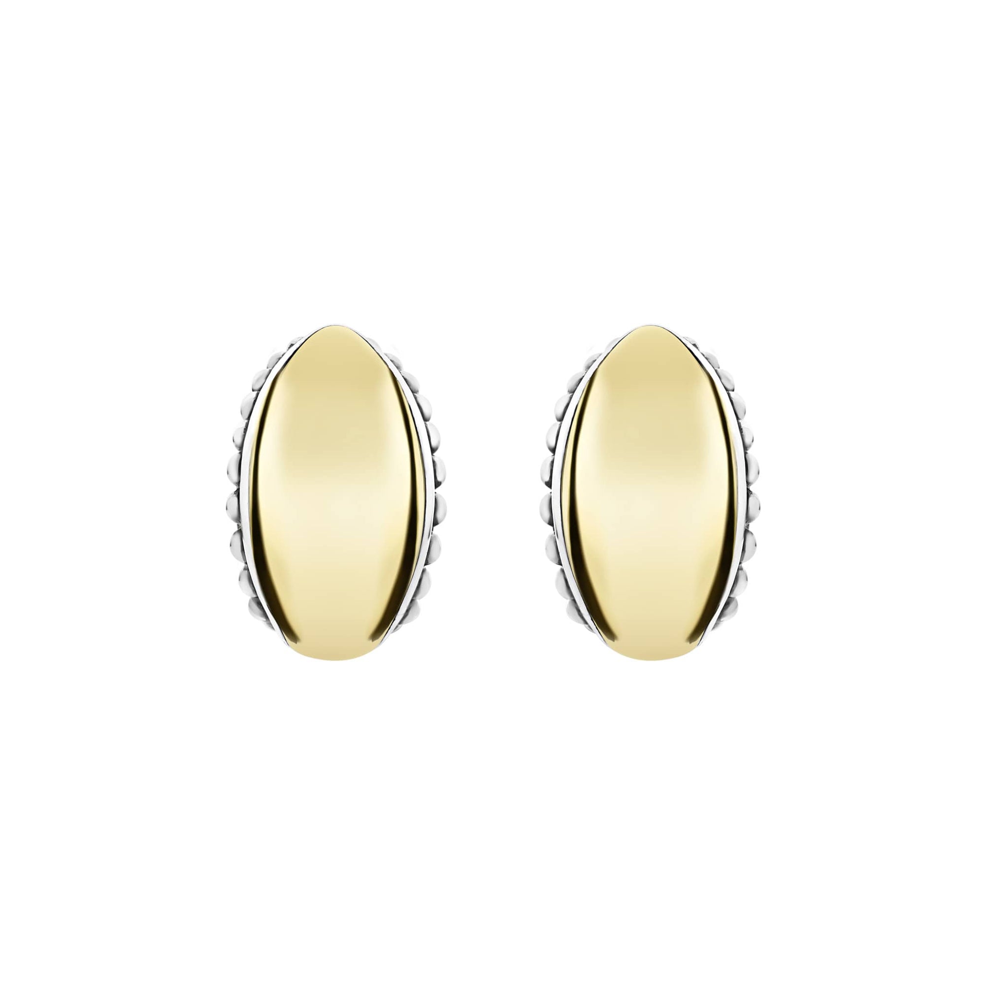 Smooth stations of 18K gold are surrounded by sterling silver Caviar beading on these classic earrings.