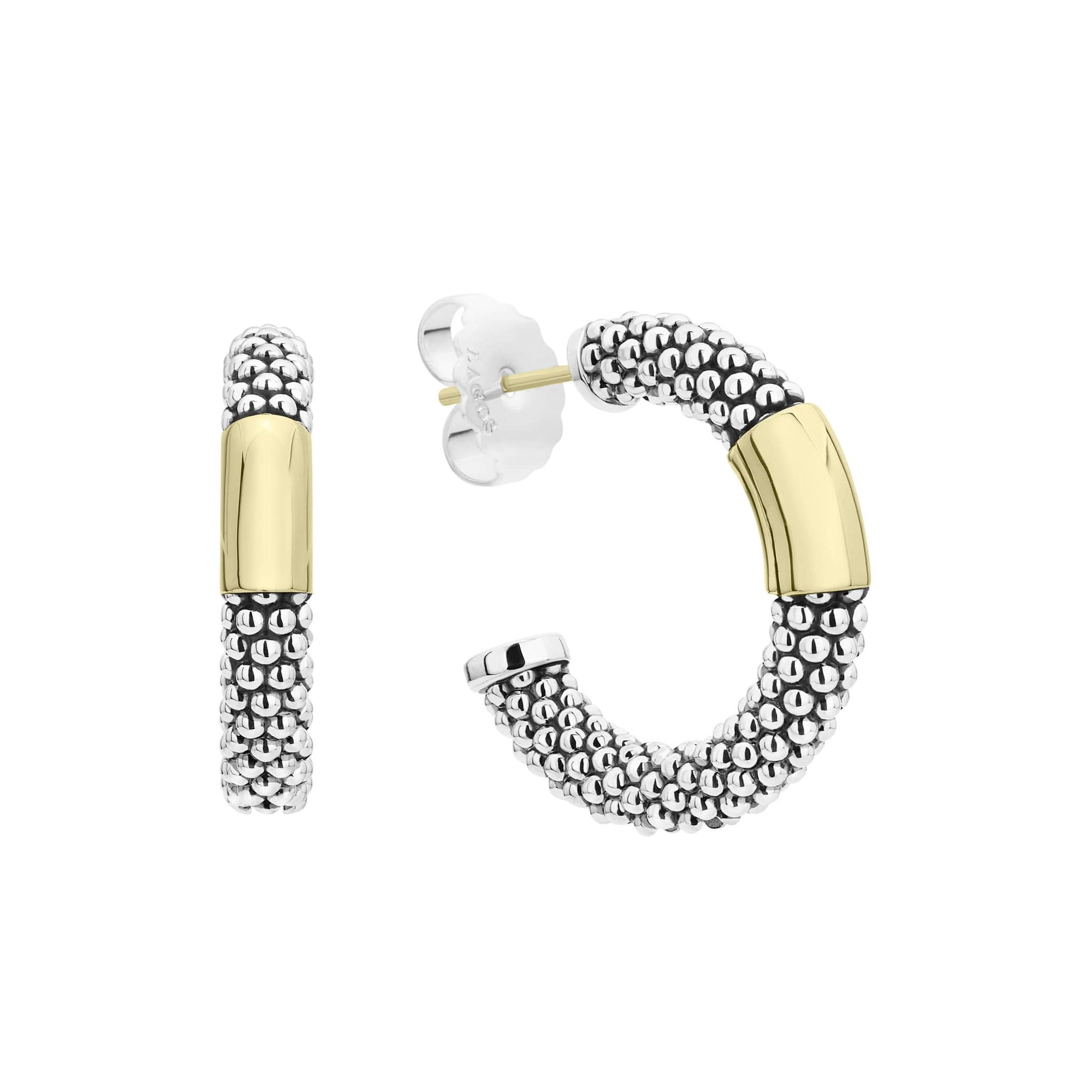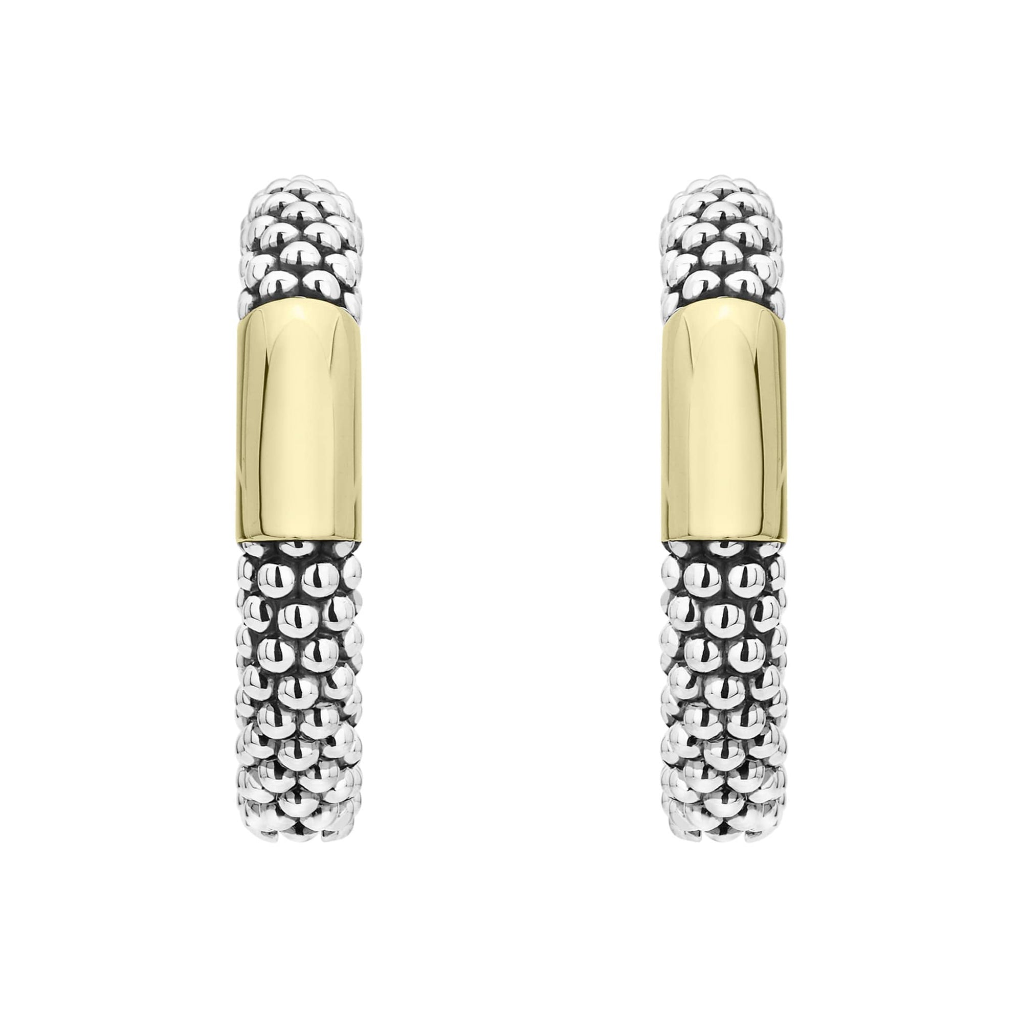 Hoop earrings with smooth 18K gold and classic sterling silver Caviar beading.