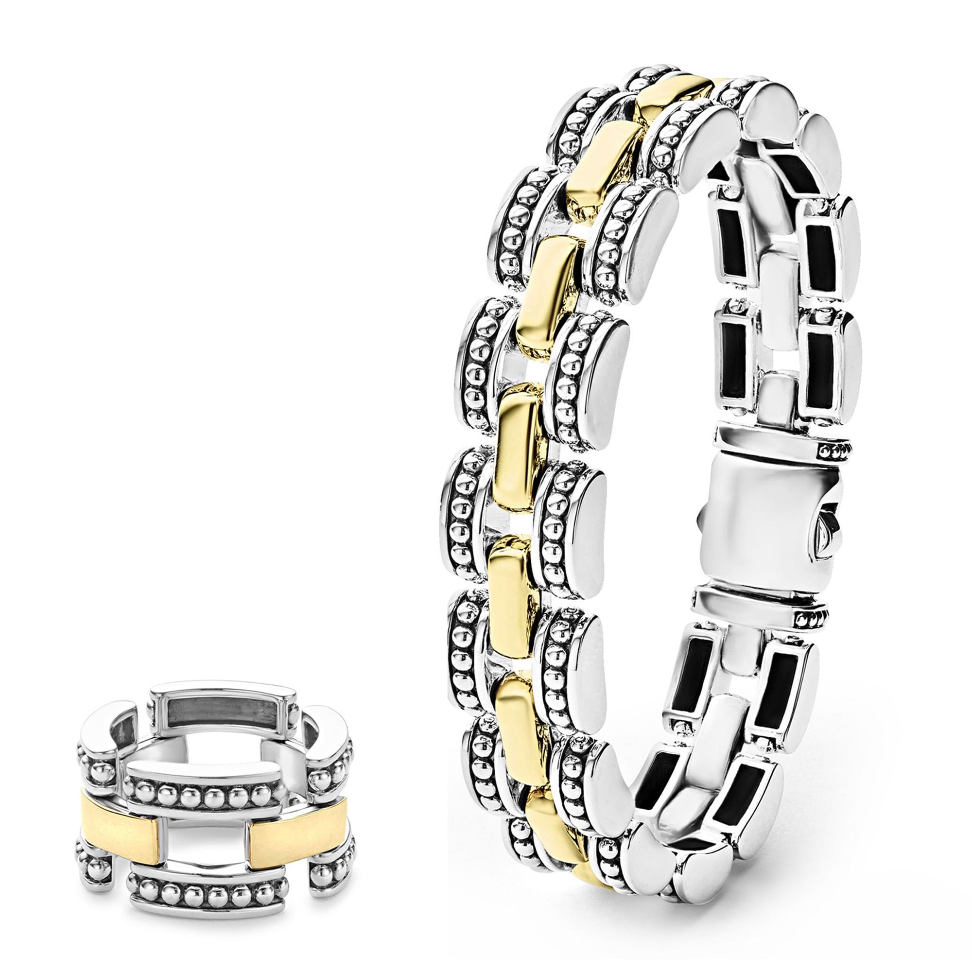Set of two High Bar two-tone link pieces that can be paired perfectly together or worn on their own.