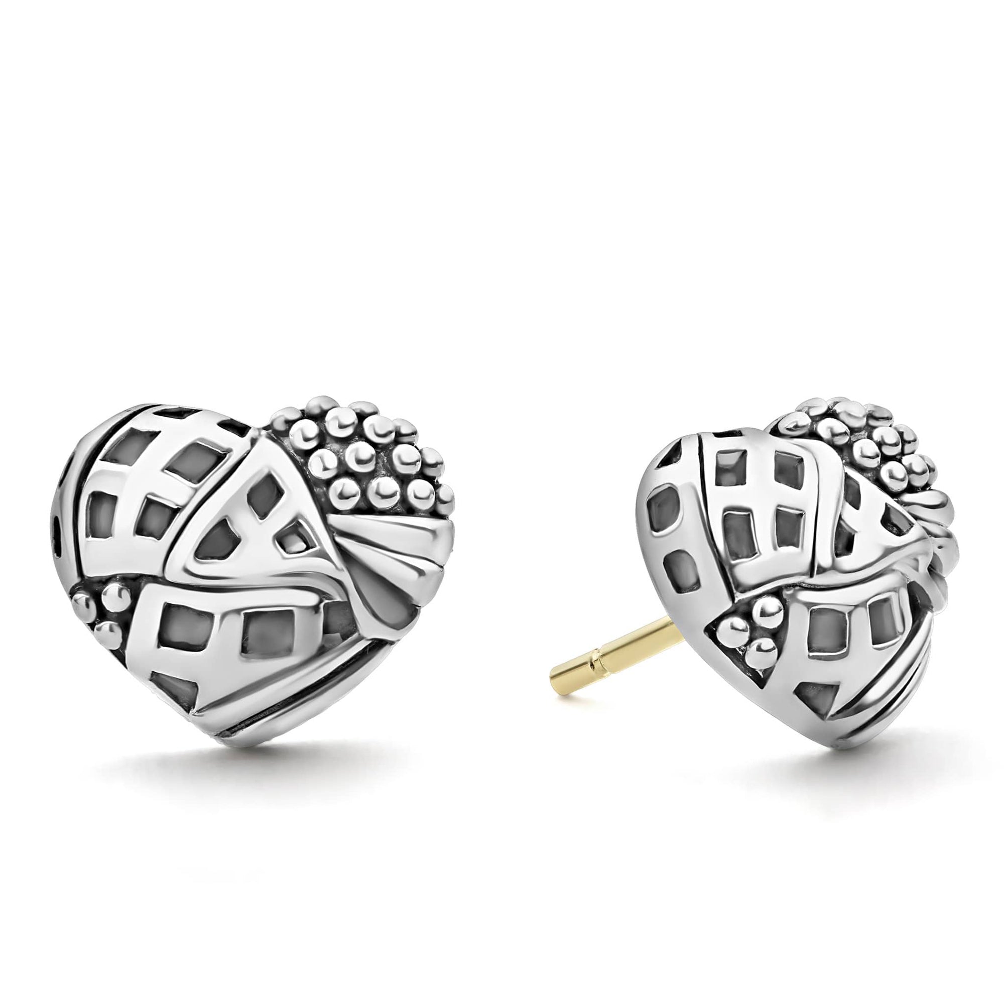 A LAGOS exclusive. Sterling silver heart stud earrings inspired by Keep Memory Alive's architectural masterpiece in Las Vegas created by Frank Gehry. 100% of the purchase will benefit Keep Memory Alive.