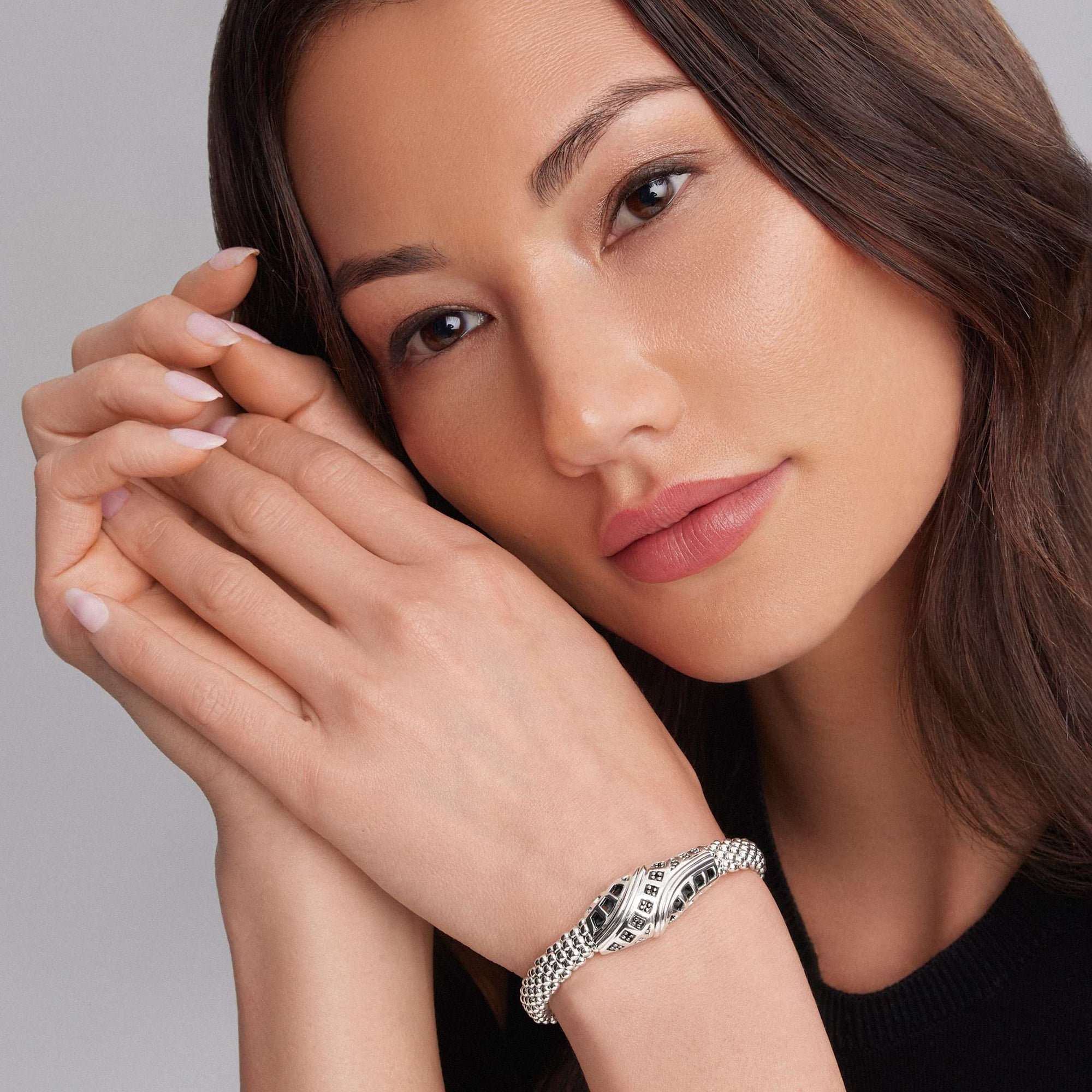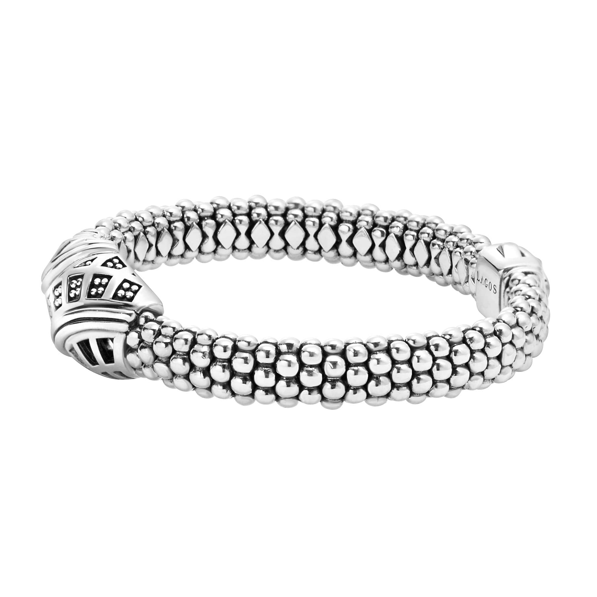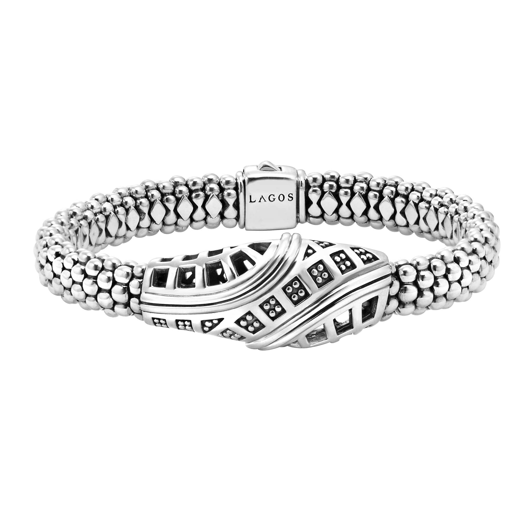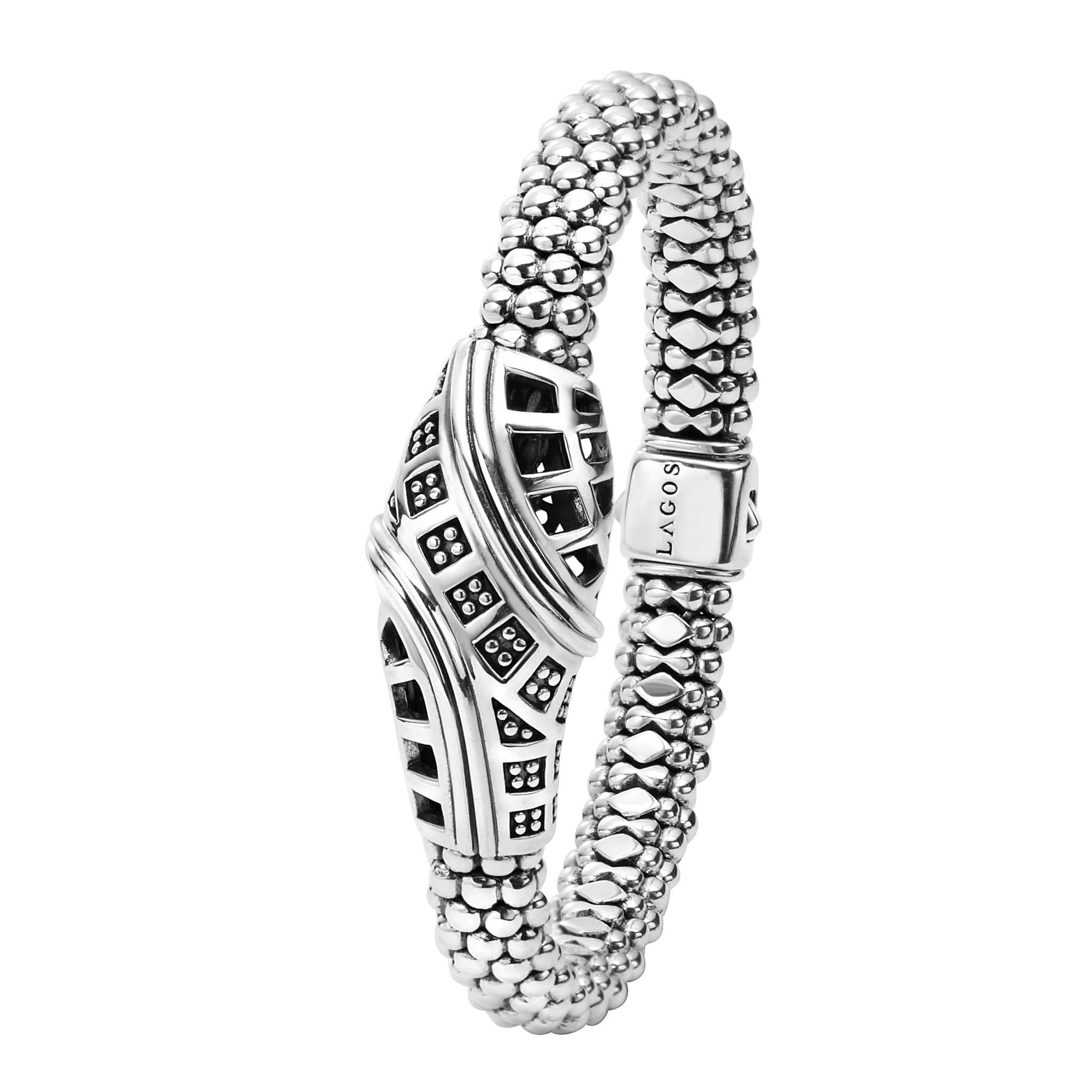 A LAGOS exclusive. Sterling silver Caviar bracelet inspired by Keep Memory Alive's architectural masterpiece in Las Vegas created by Frank Gehry. 100% of the purchase will benefit Keep Memory Alive.