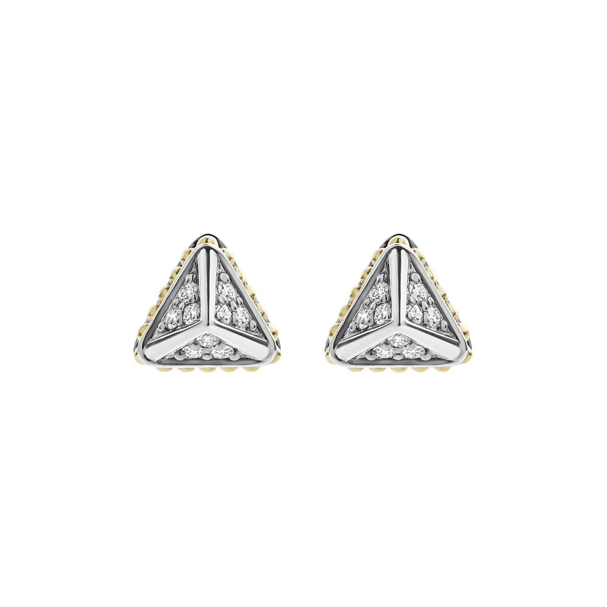 Diamond pyramid stud earrings accented by 18K gold Caviar beading. LAGOS diamonds are the highest quality natural stones.