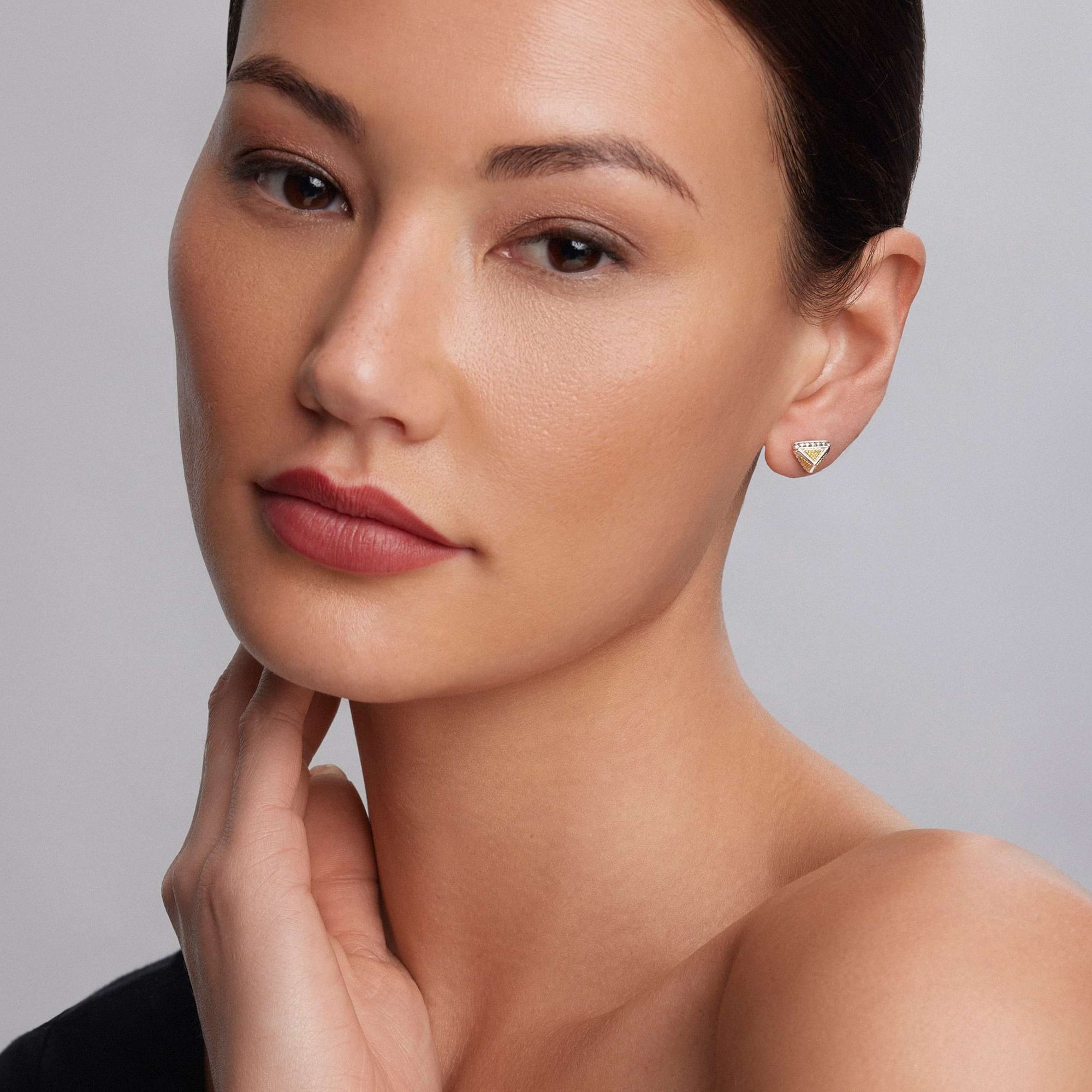 18k gold Caviar beaded pyramid stud earrings with sterling silver accents.