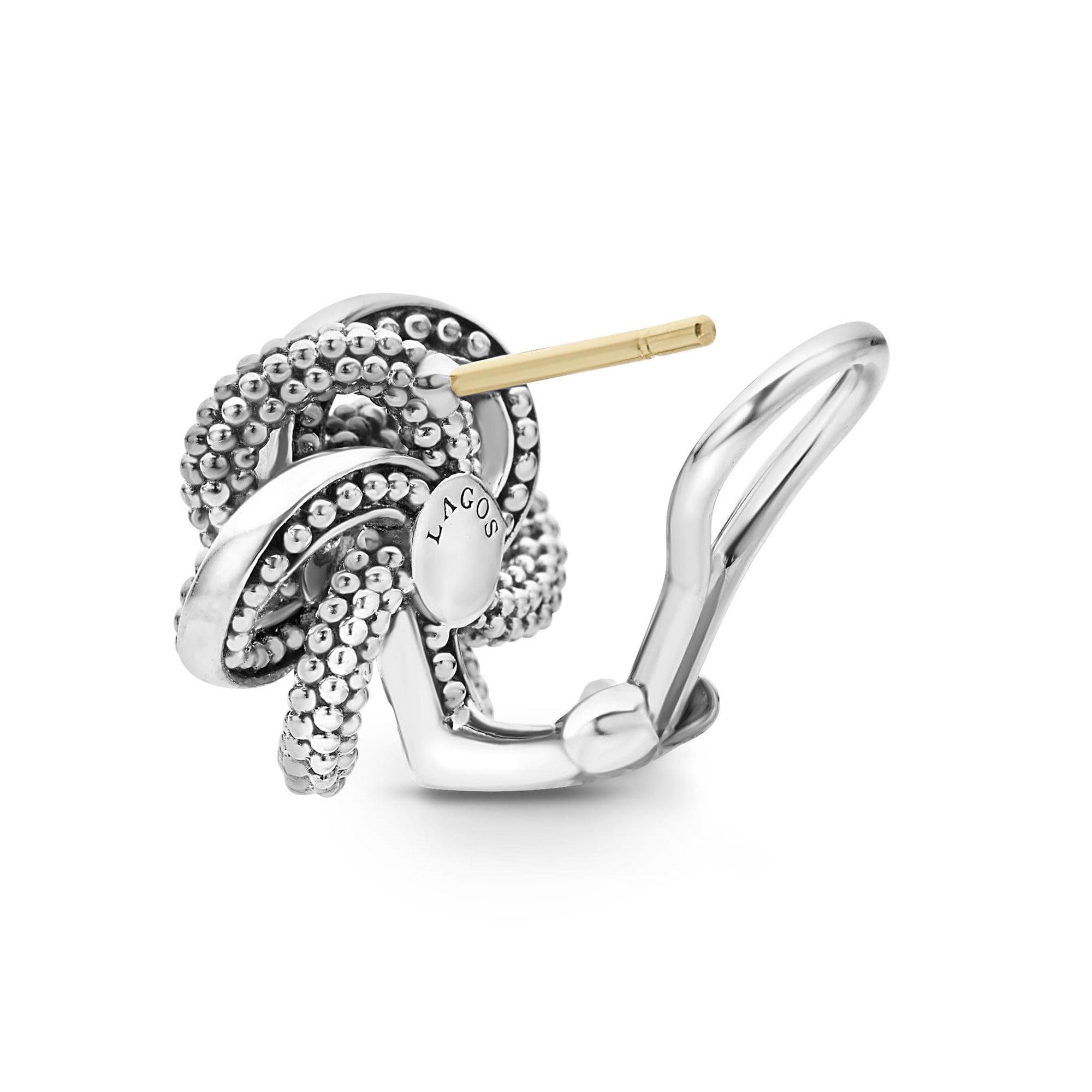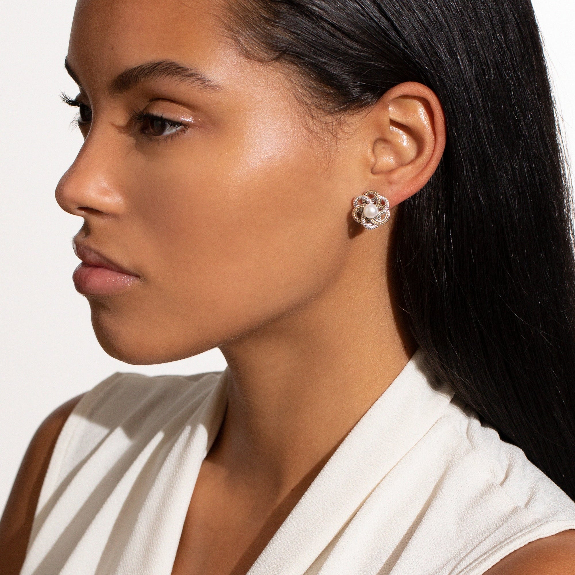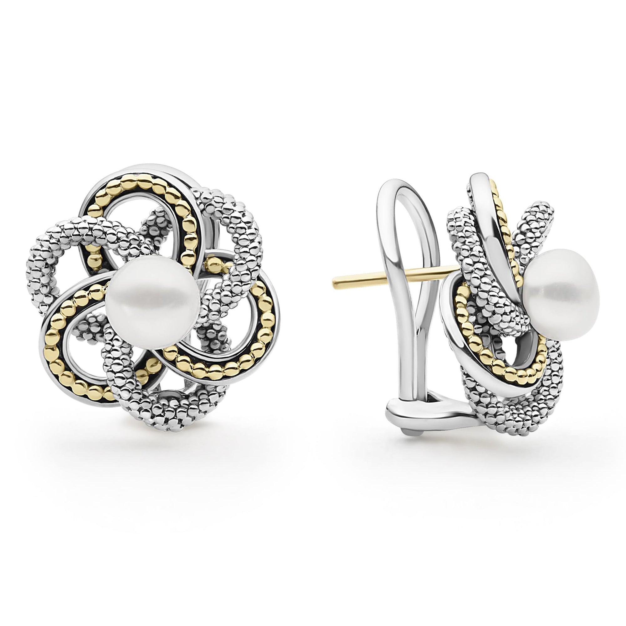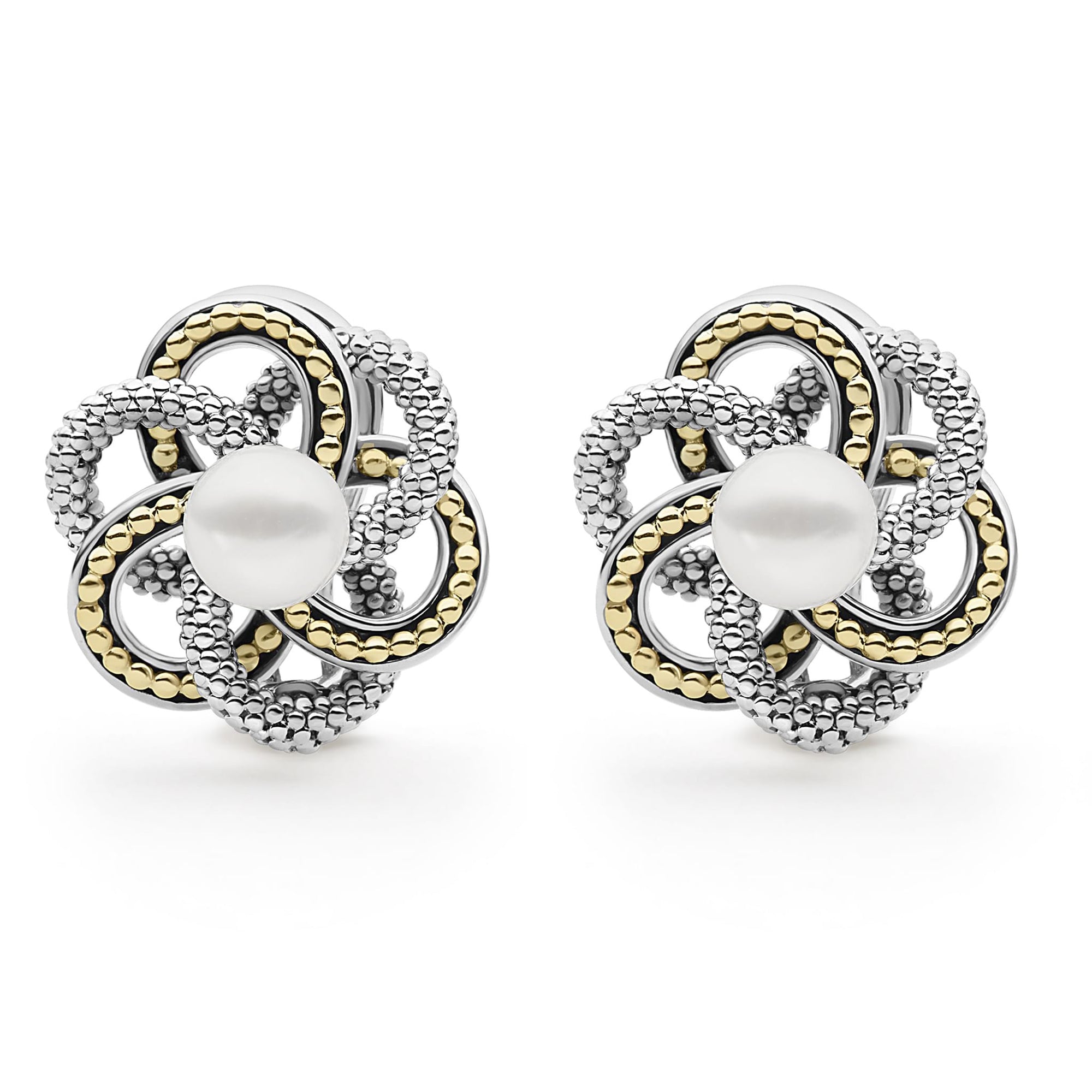 Stud earrings with 18k gold and sterling silver Caviar beading form these pearl earrings.