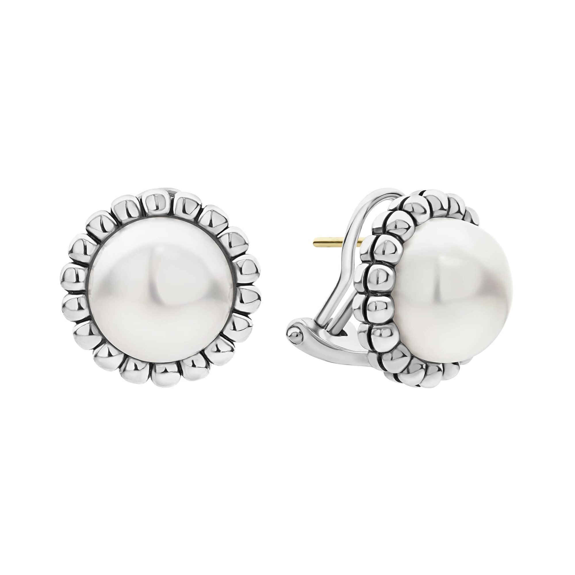 Classic cultured freshwater pearl earrings framed by flutes of sterling silver. Just the right touch for every day.