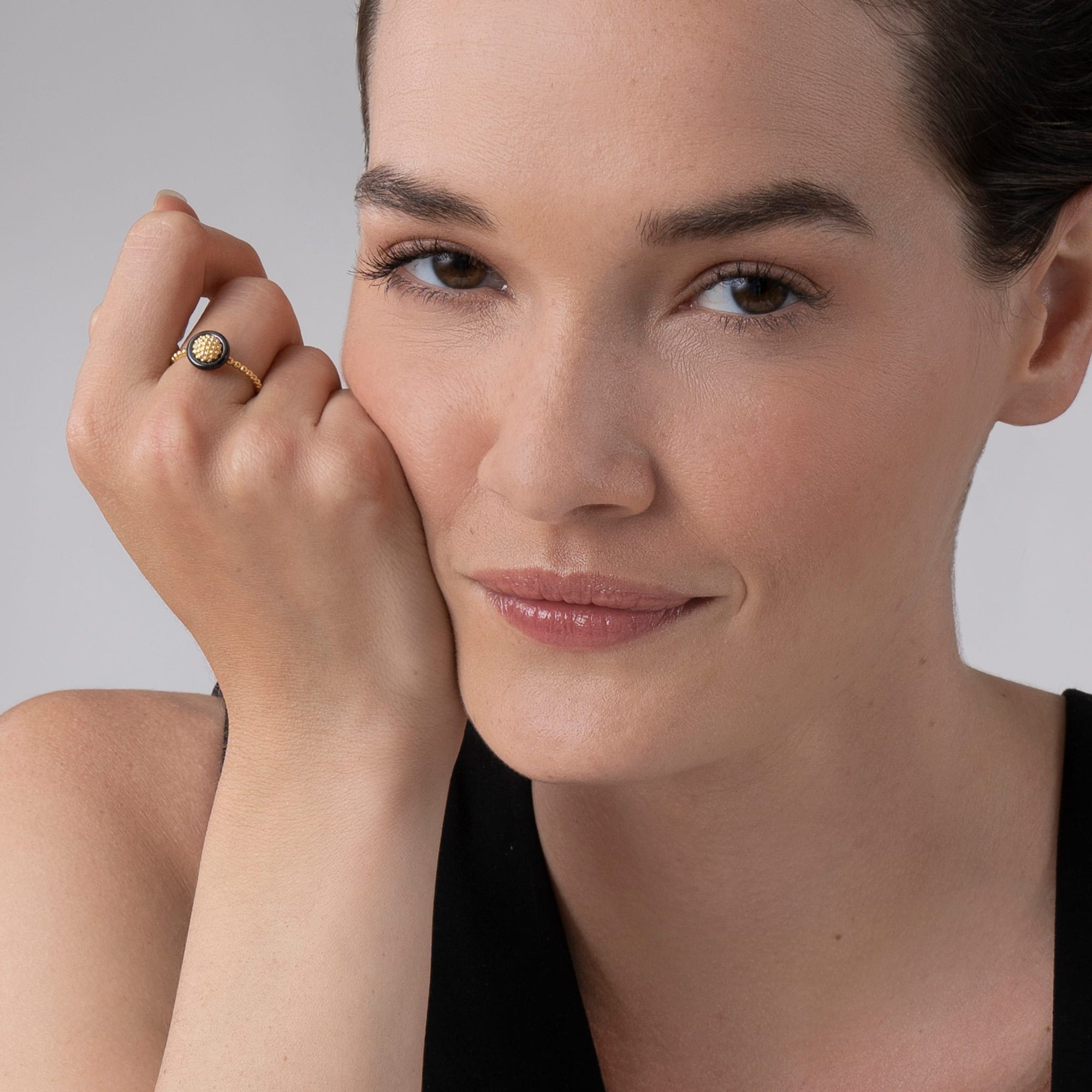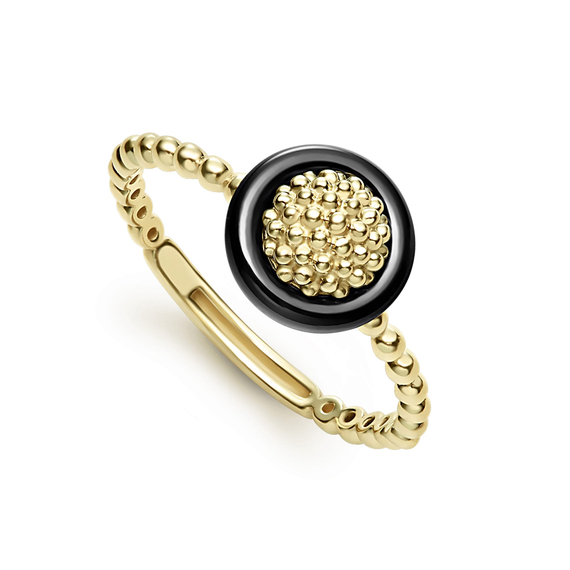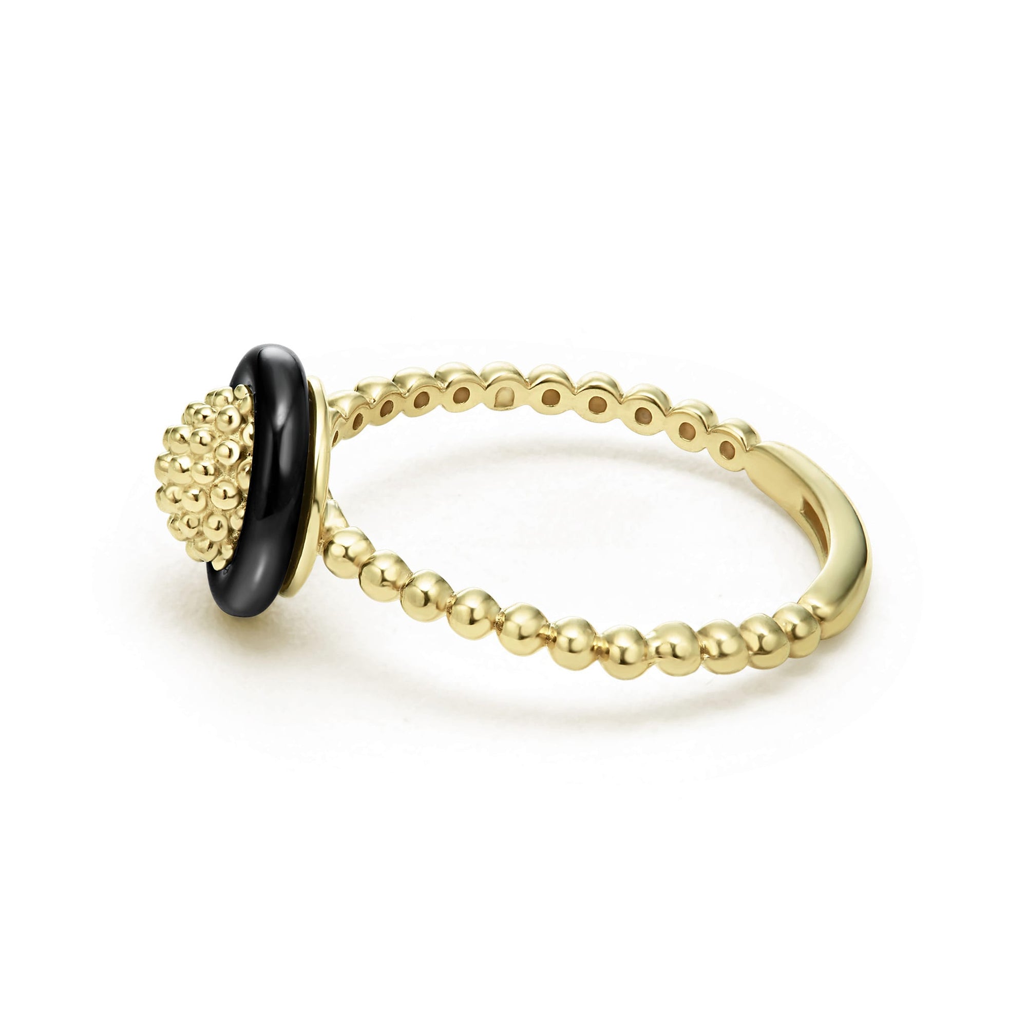 Meridian 18K Gold Caviar Black Ceramic Ring
