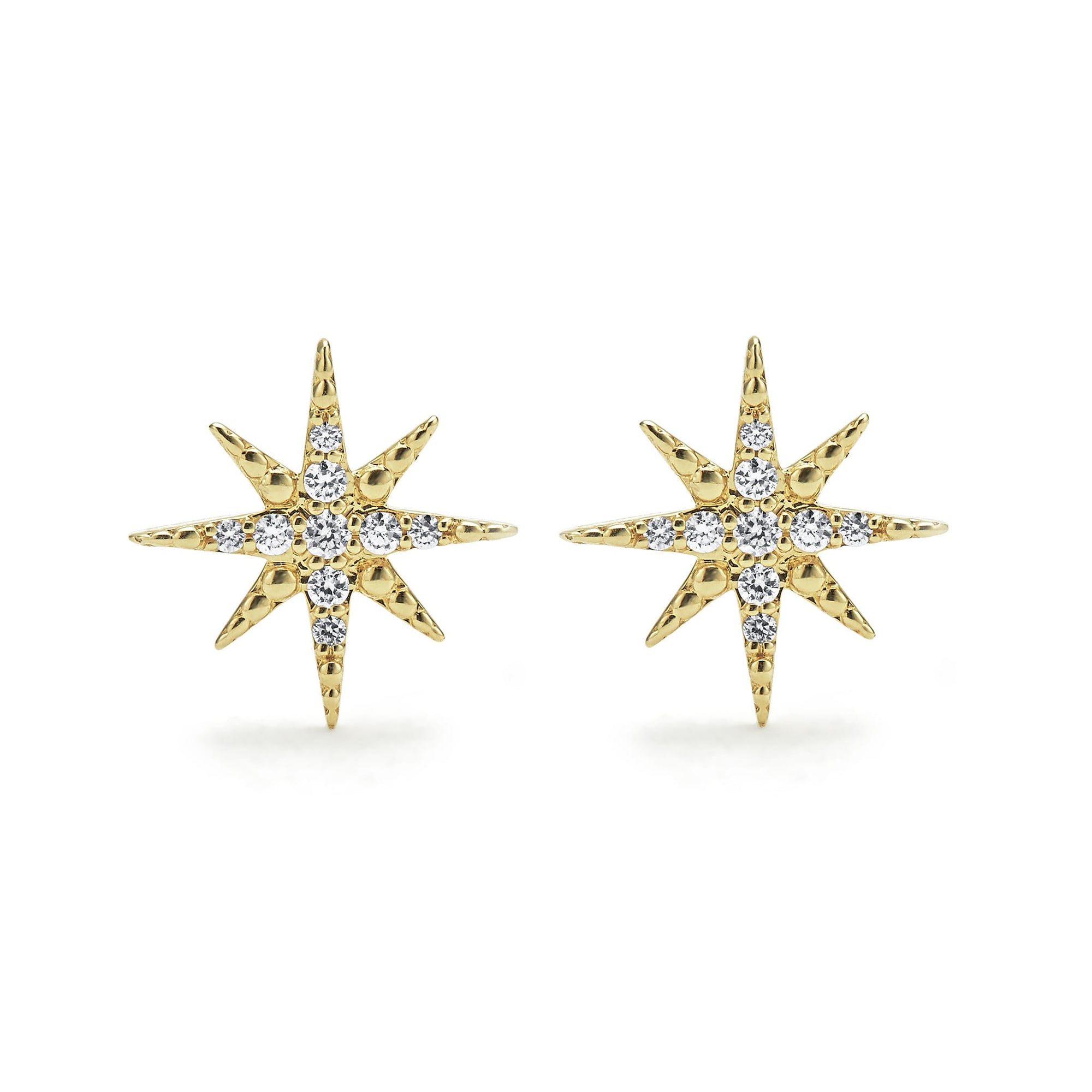 Diamonds and 18k gold form these star motif stud earrings. LAGOS diamonds are the highest quality natural stones.