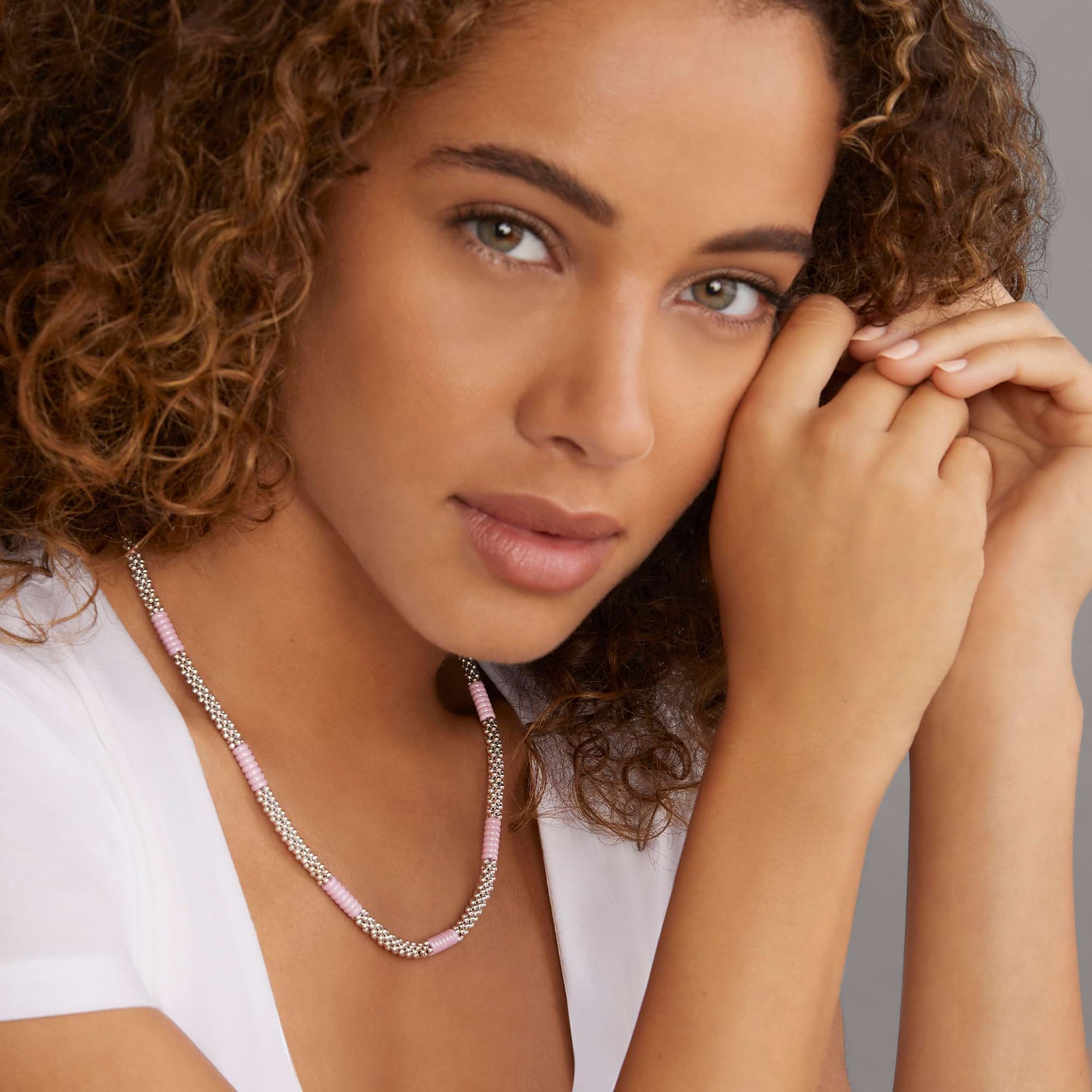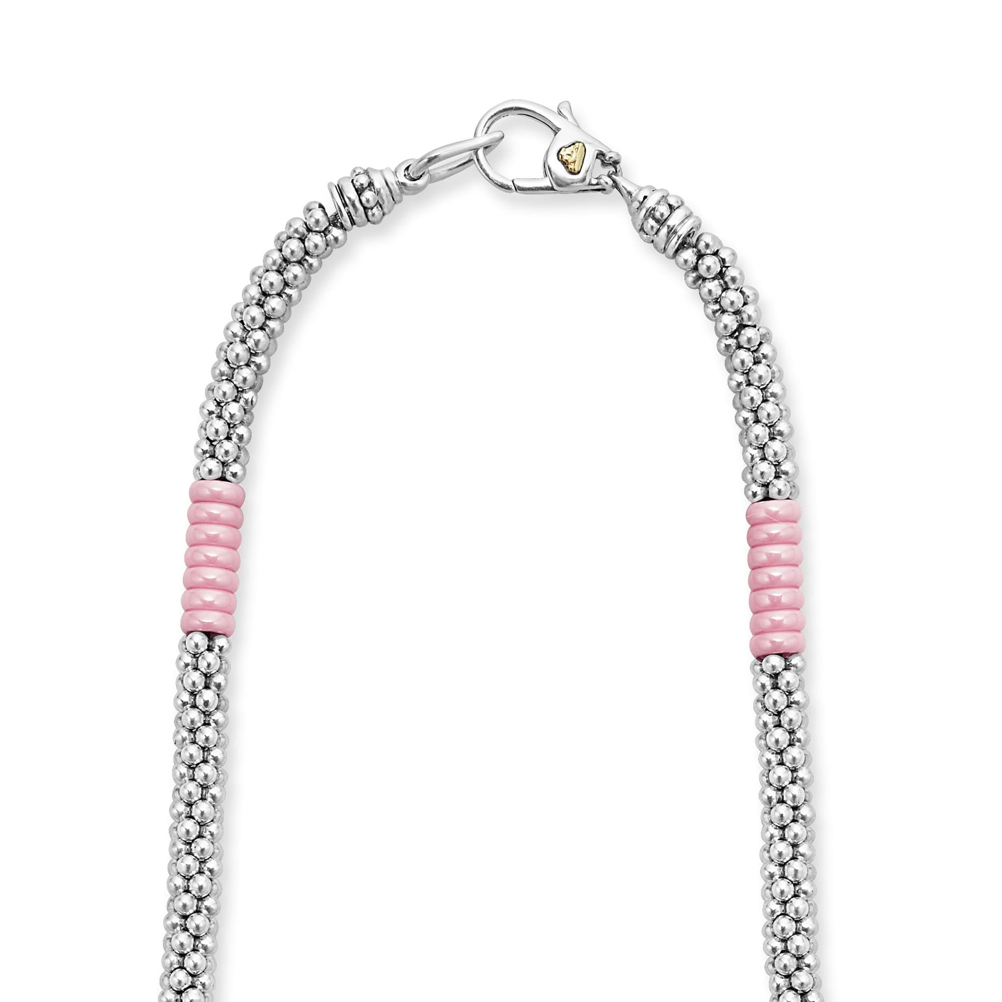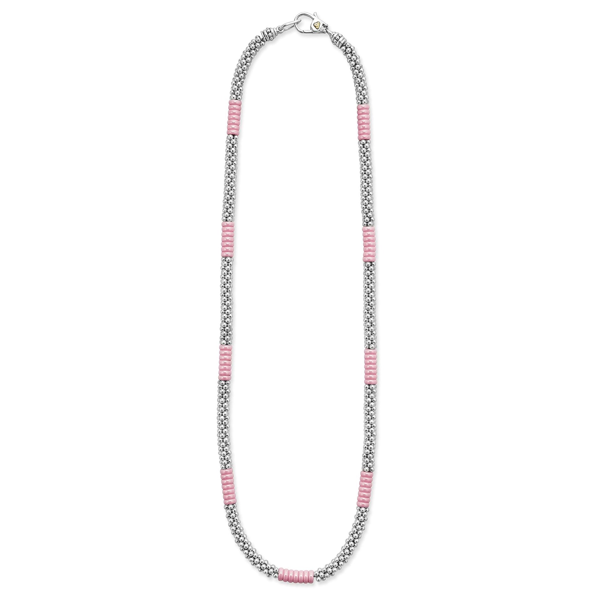 A pink ceramic and sterling silver Caviar beaded necklace that is finished with signature lobster clasp.
