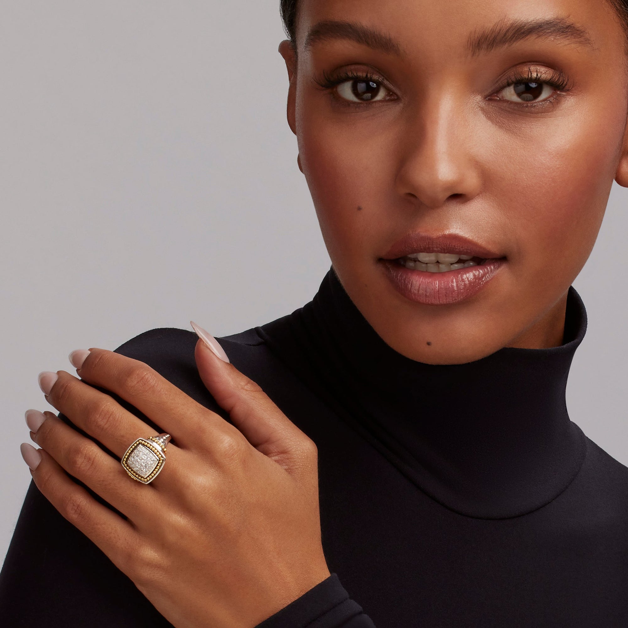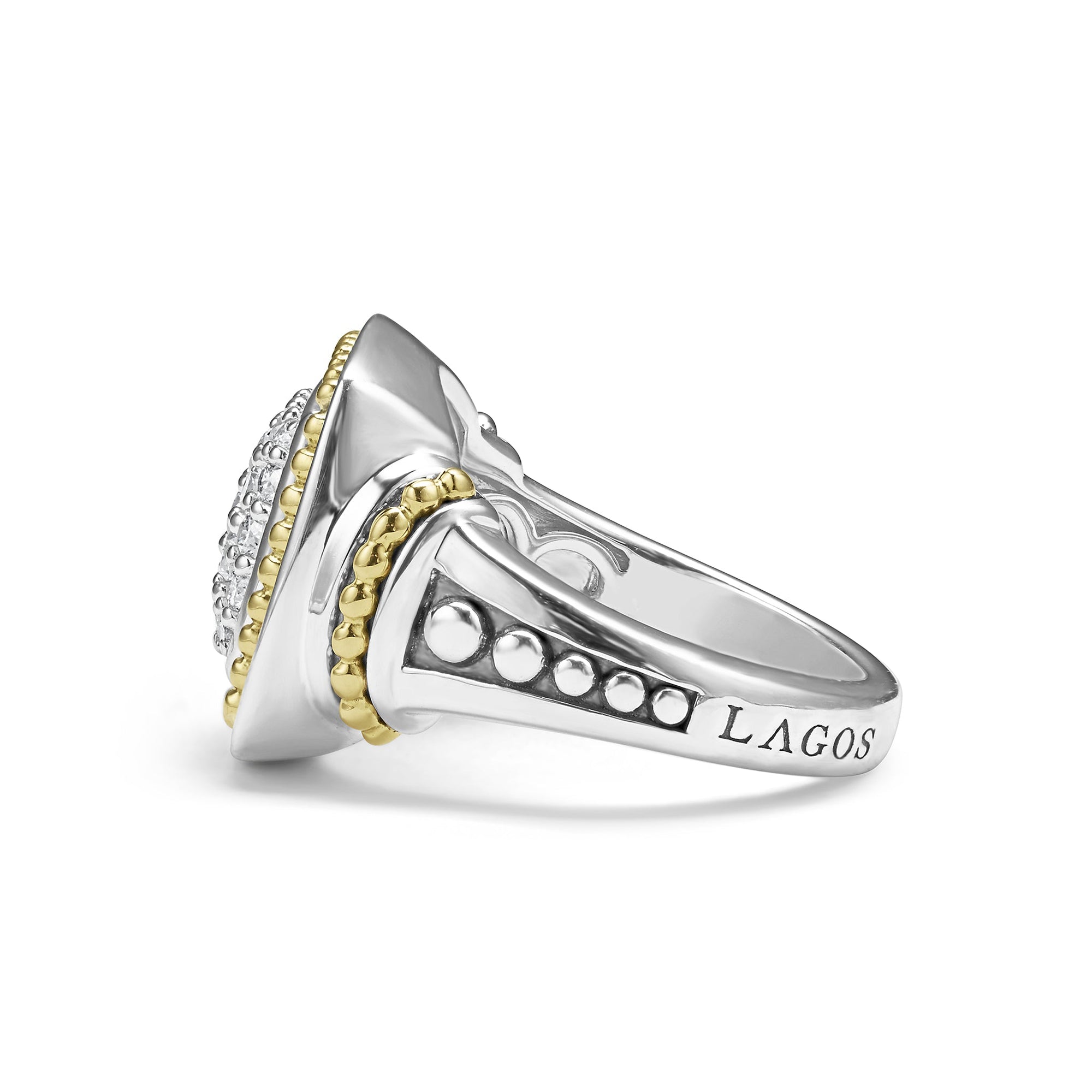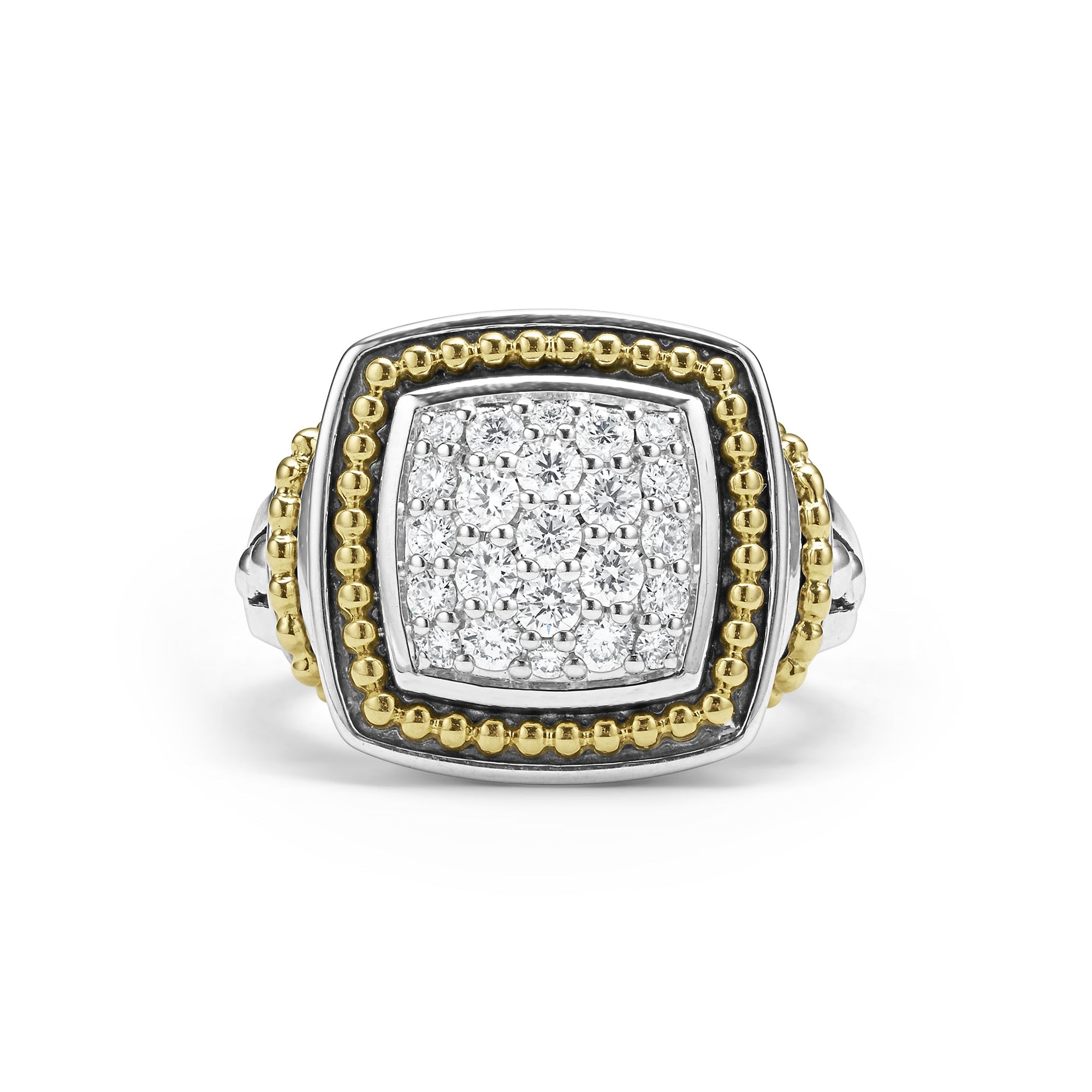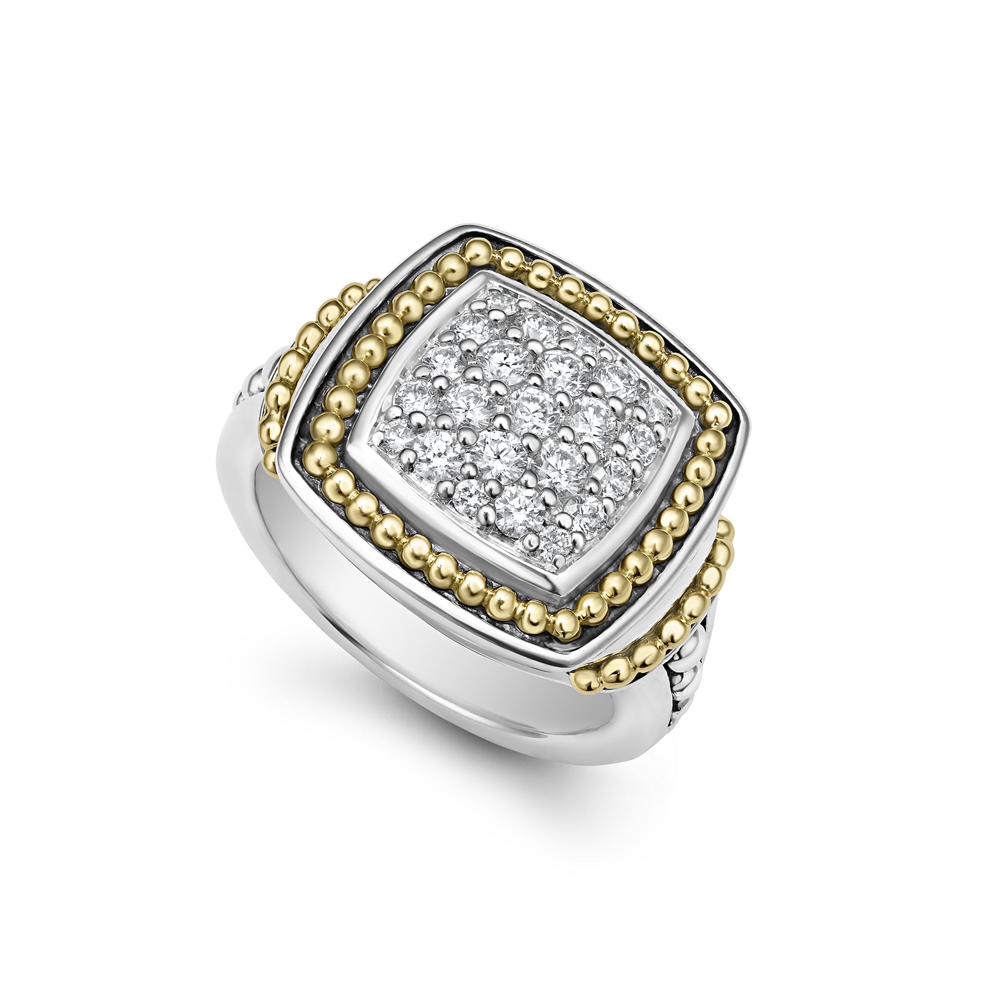 A LAGOS exclusive. Diamonds and 18K gold Caviar beading form this statement ring. LAGOS diamonds are the highest quality natural stones.
