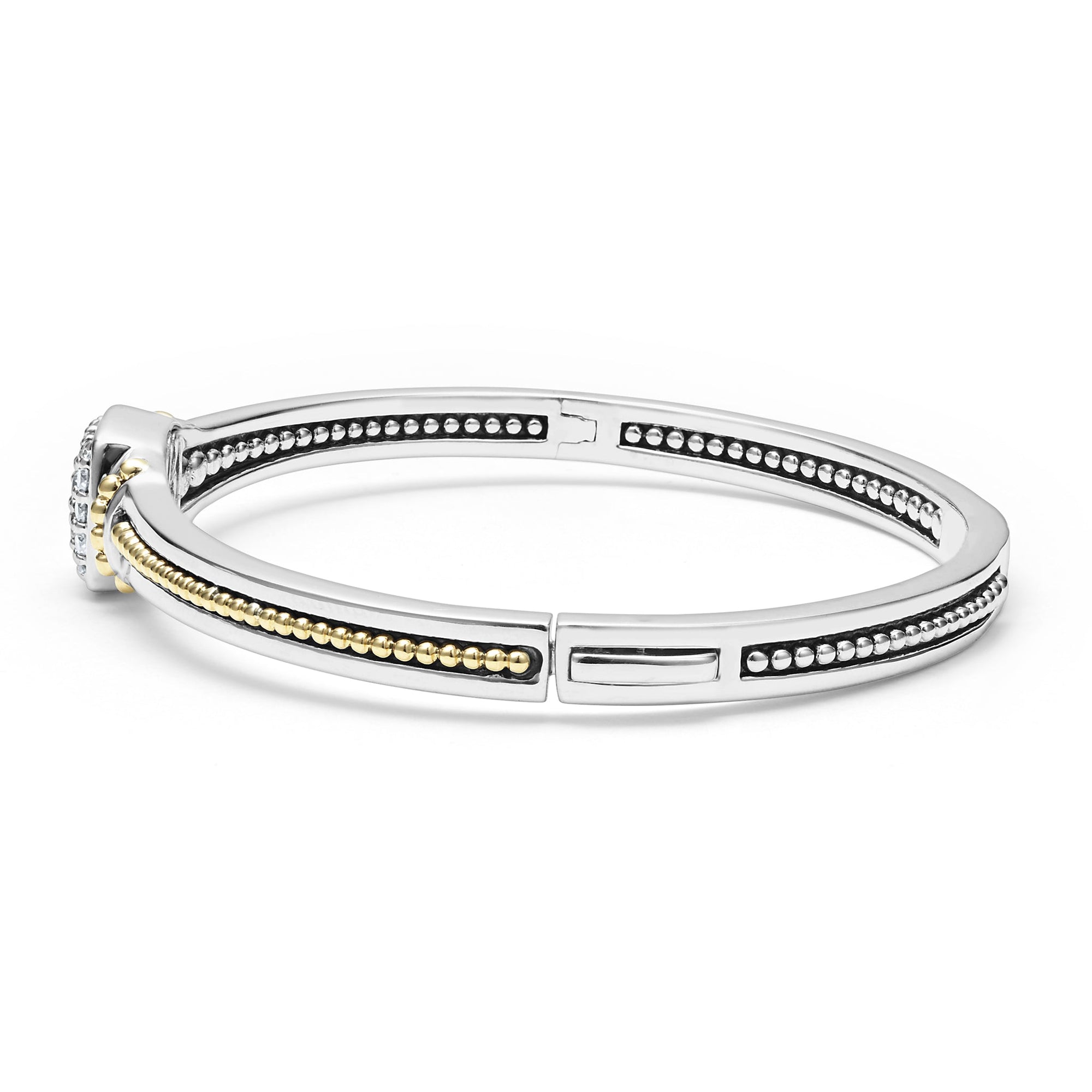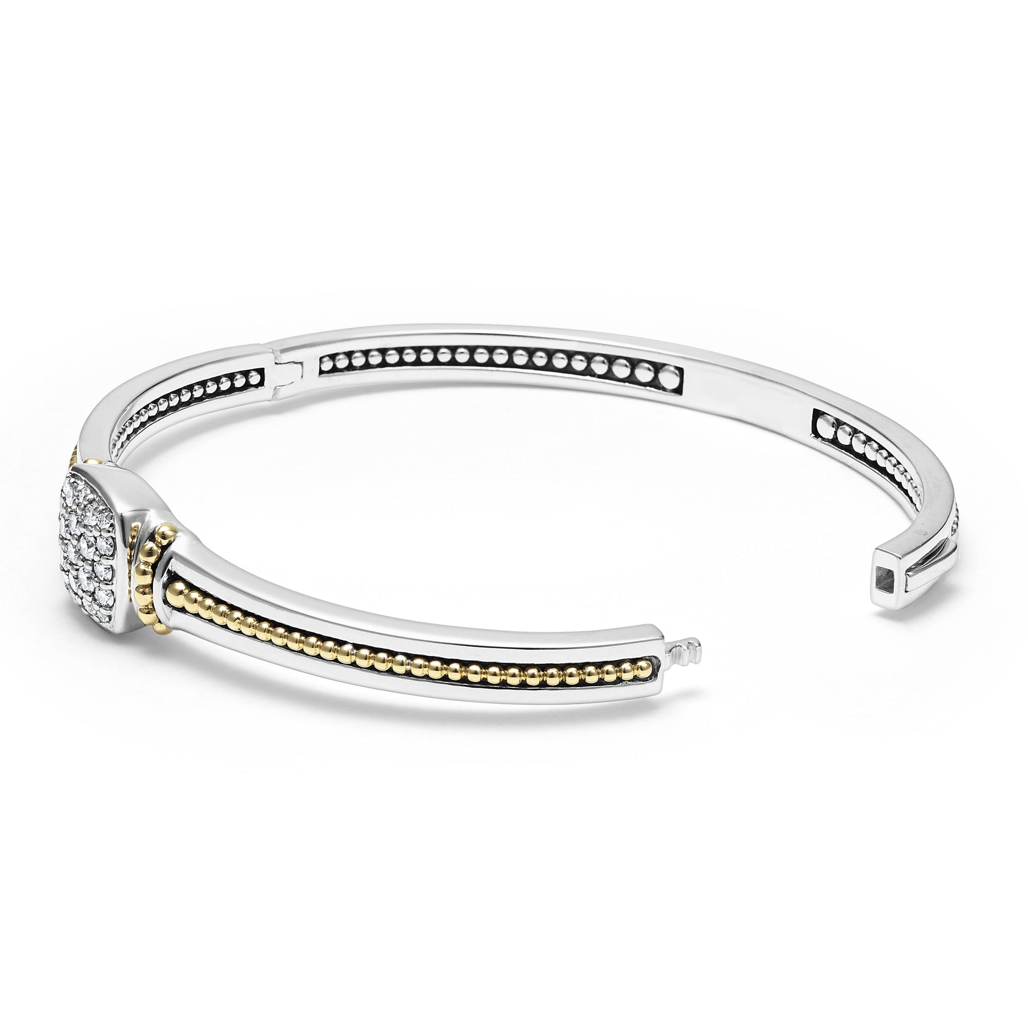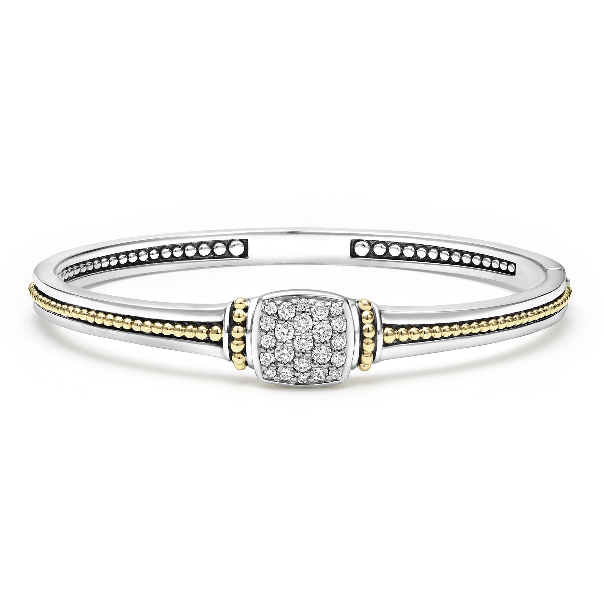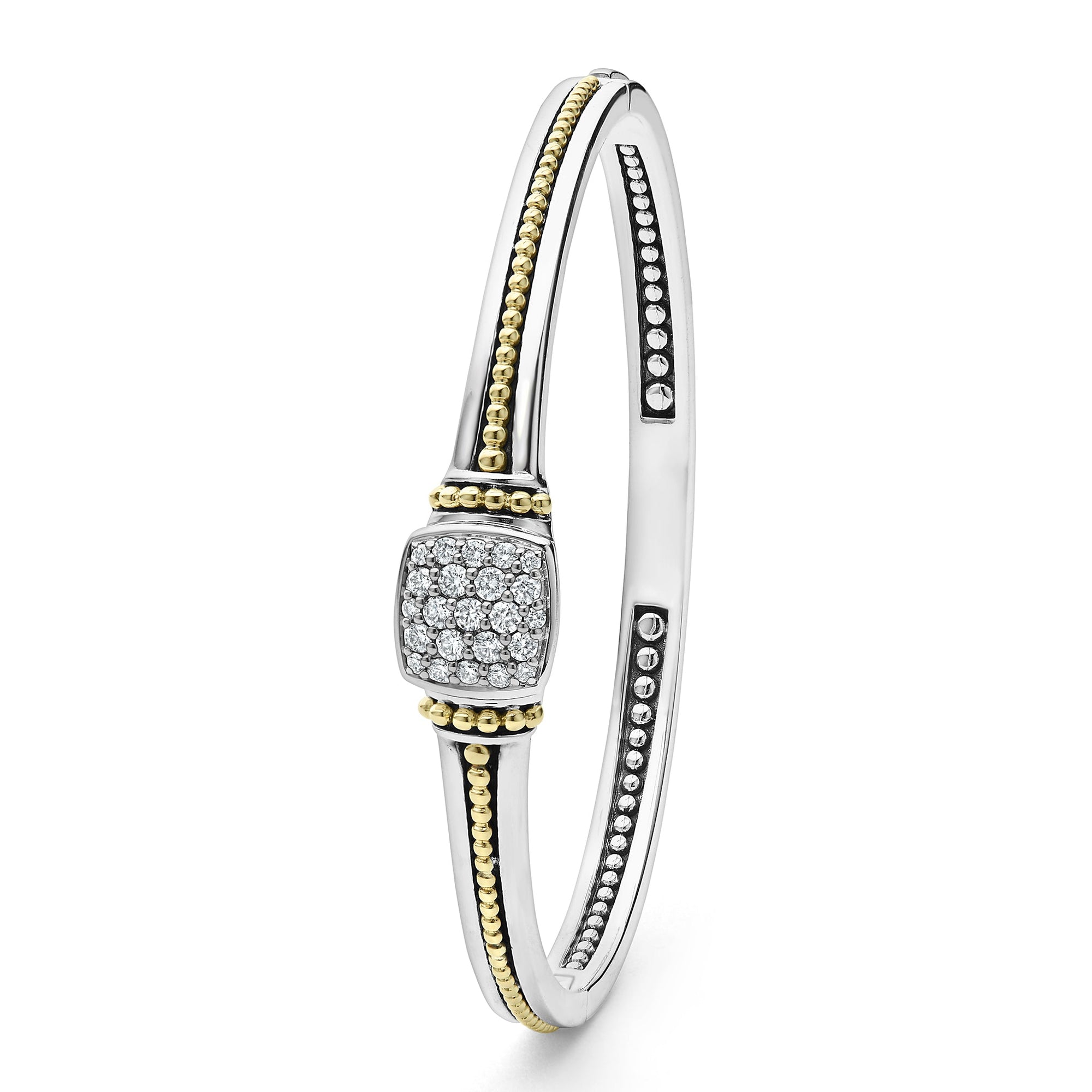 A LAGOS exclusive. Diamonds and 18K gold Caviar beading forms this unique cuff bracelet. LAGOS diamonds are the highest quality natural stones.