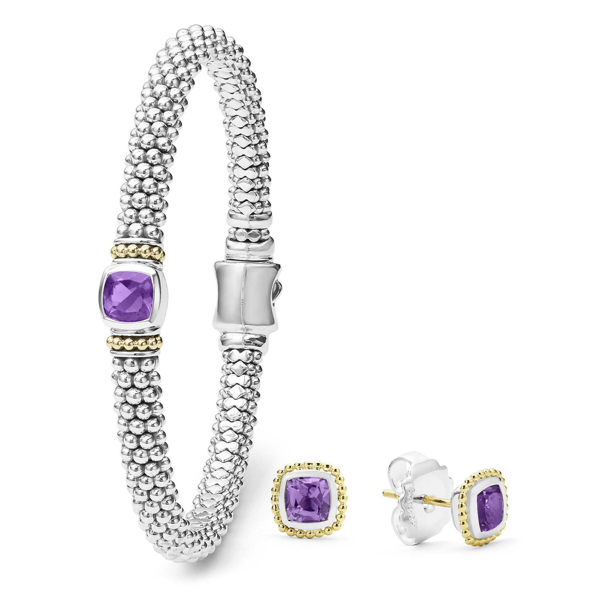 An ideal gift set of two amethyst gemstone Caviar pieces that can be paired perfectly together or worn on their own.