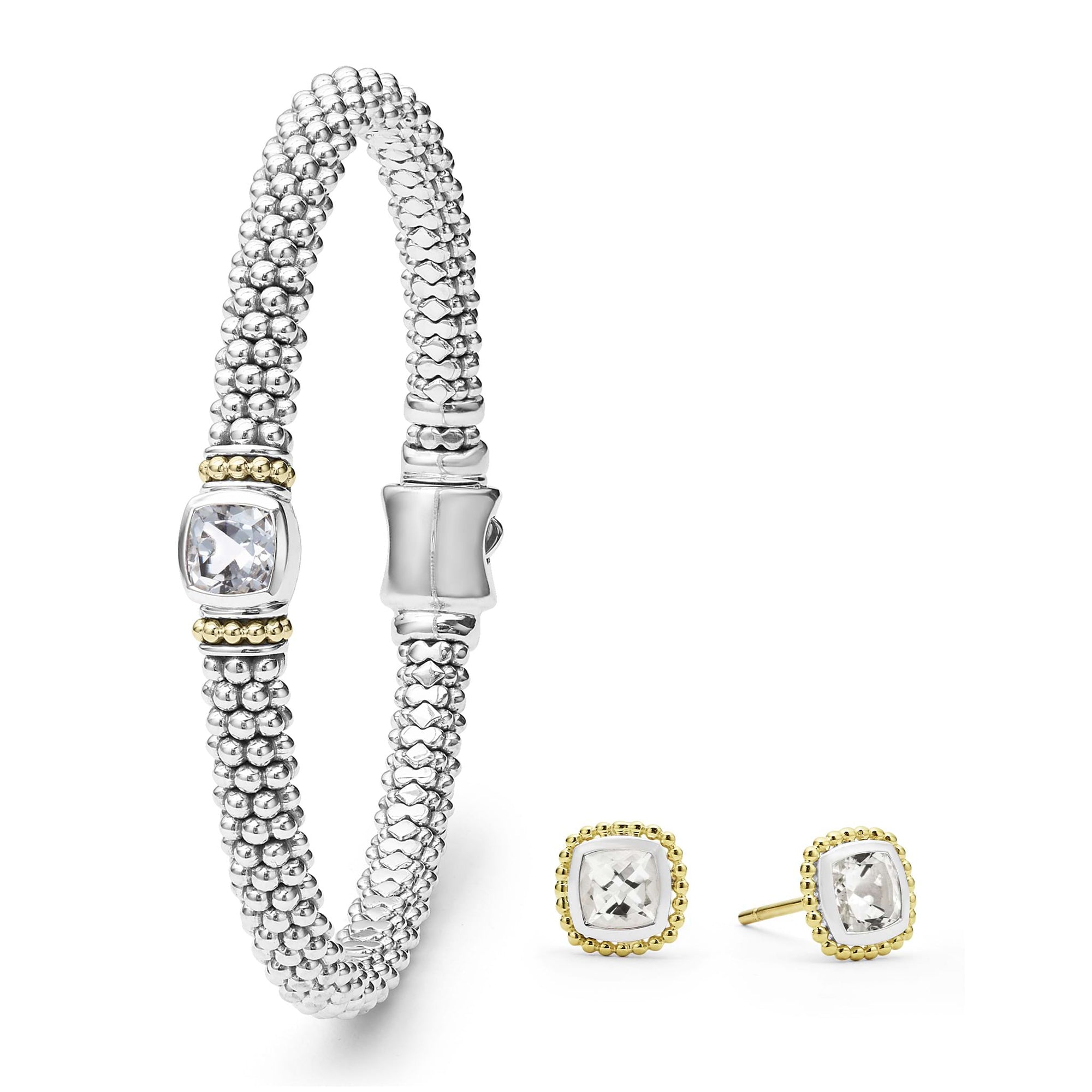 An ideal gift set of two white topaz gemstone Caviar pieces that can be paired perfectly together or worn on their own.