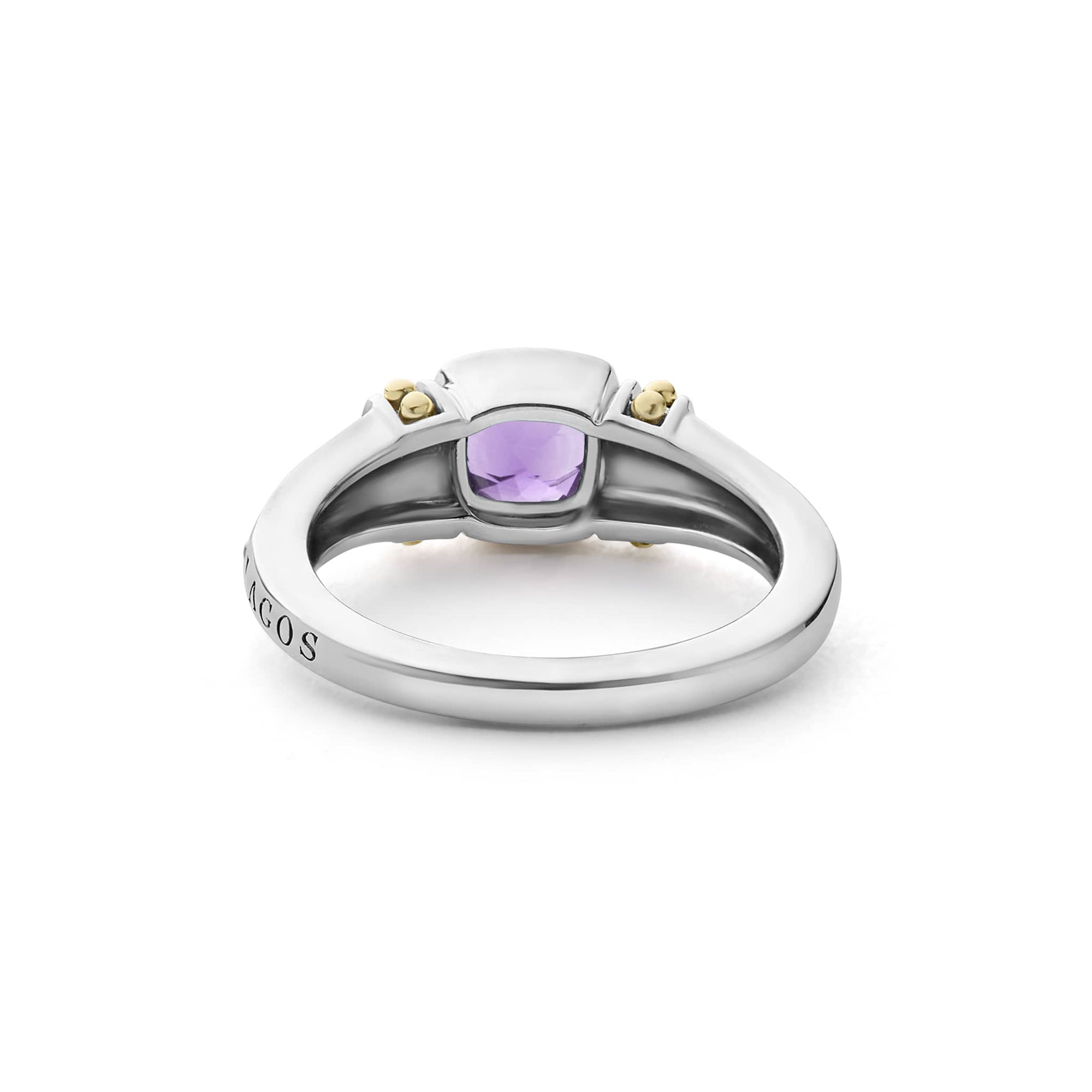 A LAGOS exclusive. Amethyst gemstone ring surrounded by sterling silver and 18K gold Caviar beading.