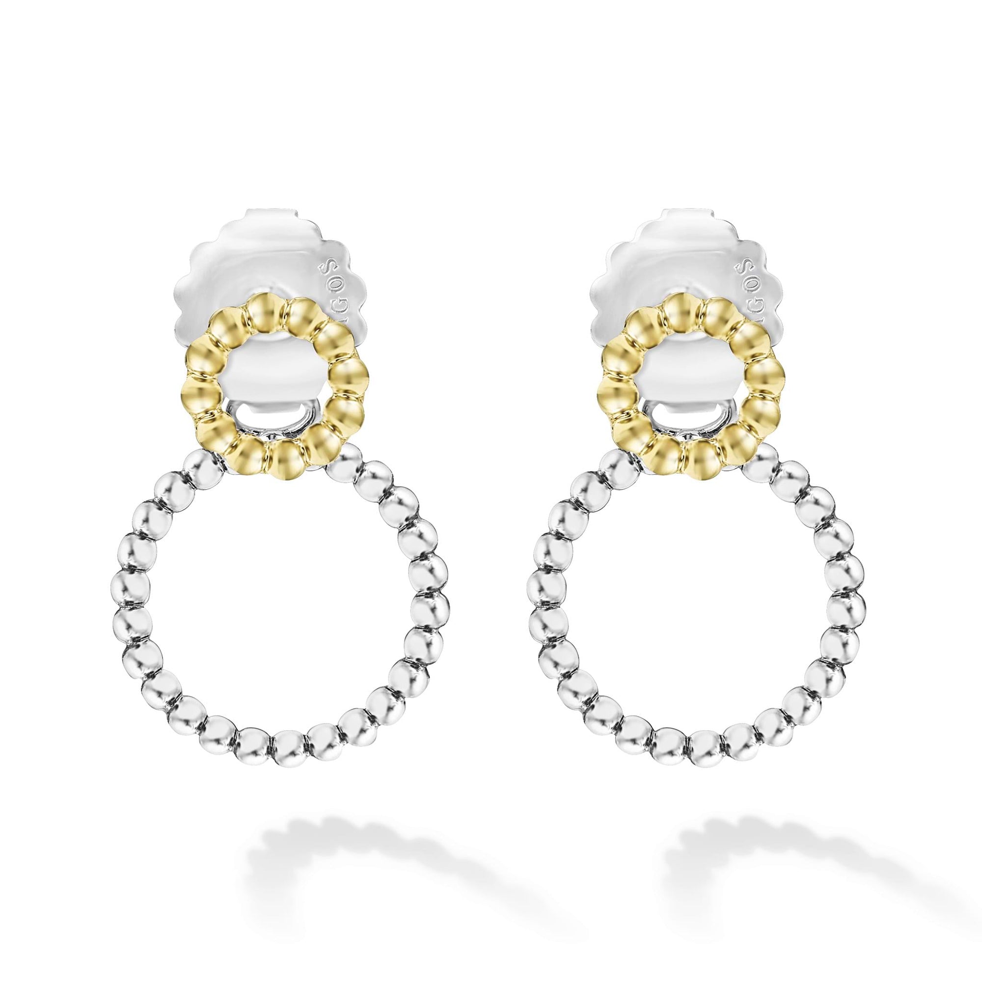 A LAGOS exclusive. 18K gold and sterling silver Caviar beading form these circle drop earrings.