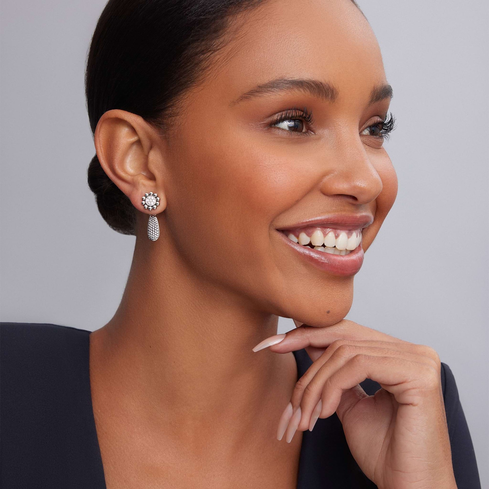 A LAGOS exclusive. Pavé diamonds surrounded by sterling silver form these Caviar beaded drop earrings. Backings are removable to mix-and-match your favorite LAGOS earrings.
