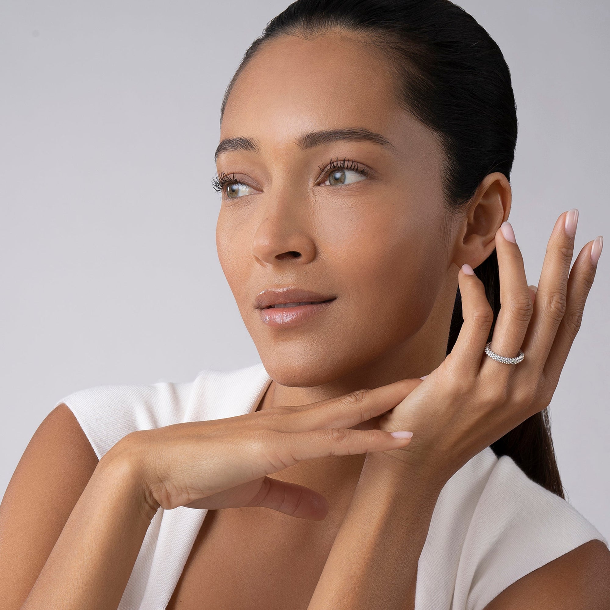 Sterling silver Caviar beaded stacking ring that is perfect for creating a unique combination with other designs in the Stacking Rings collection.