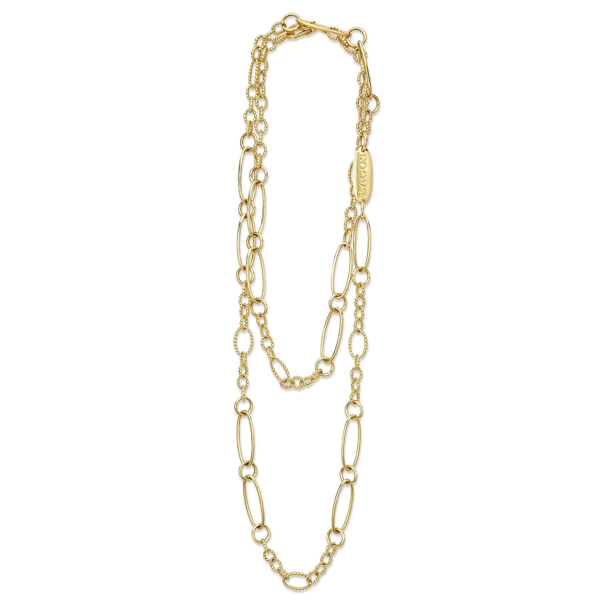 18k gold variations of Caviar beading & fluting elements form this timeless link necklace.