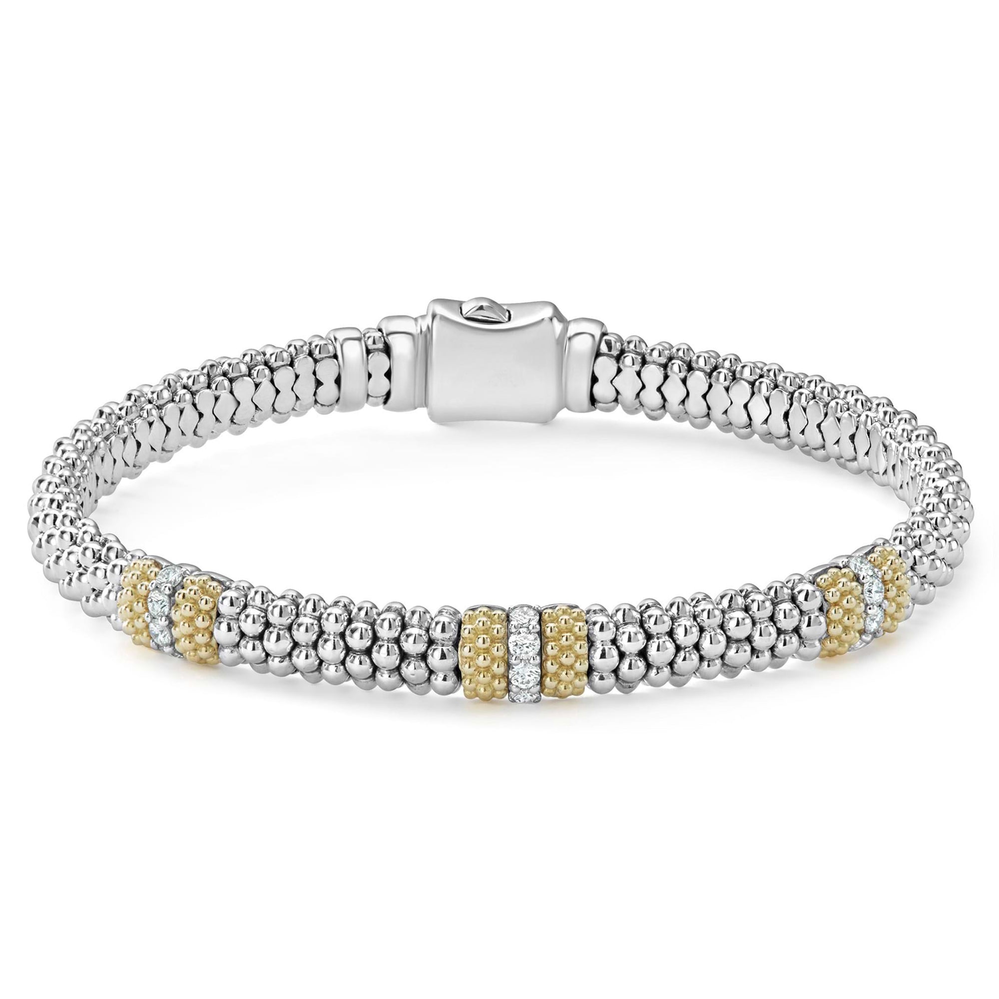 Set of two 18K gold and diamond 6mm bracelets that complement each other perfectly. LAGOS diamonds are the highest quality natural stones.