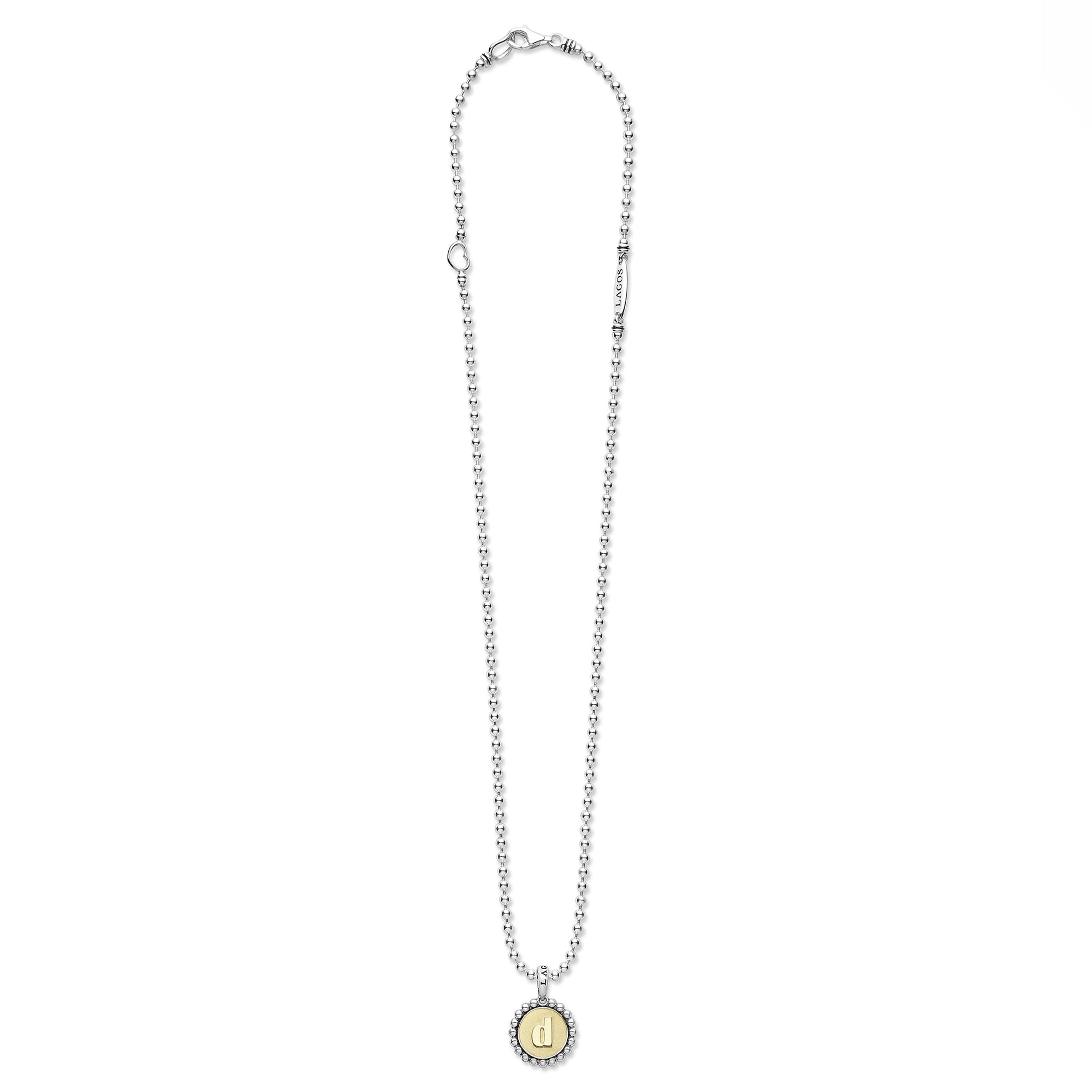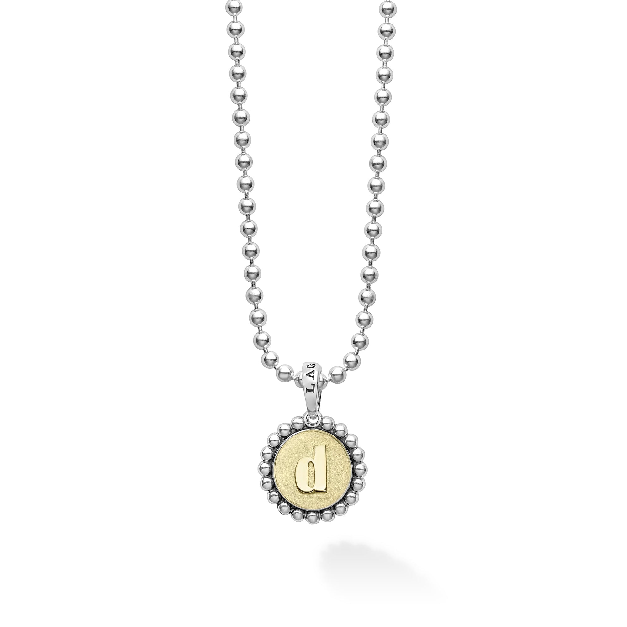 Our Signature Caviar sterling silver and 18K gold initial 'D' charm finished on a sterling silver ball chain necklace.