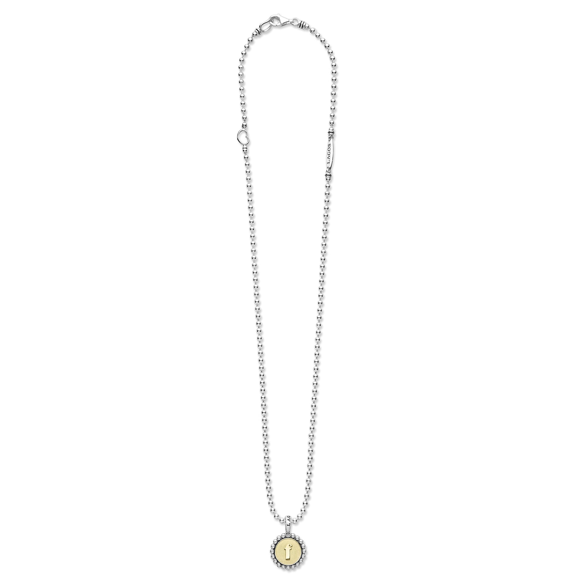 Our Signature Caviar sterling silver and 18K gold initial 'F' charm finished on a sterling silver ball chain necklace.