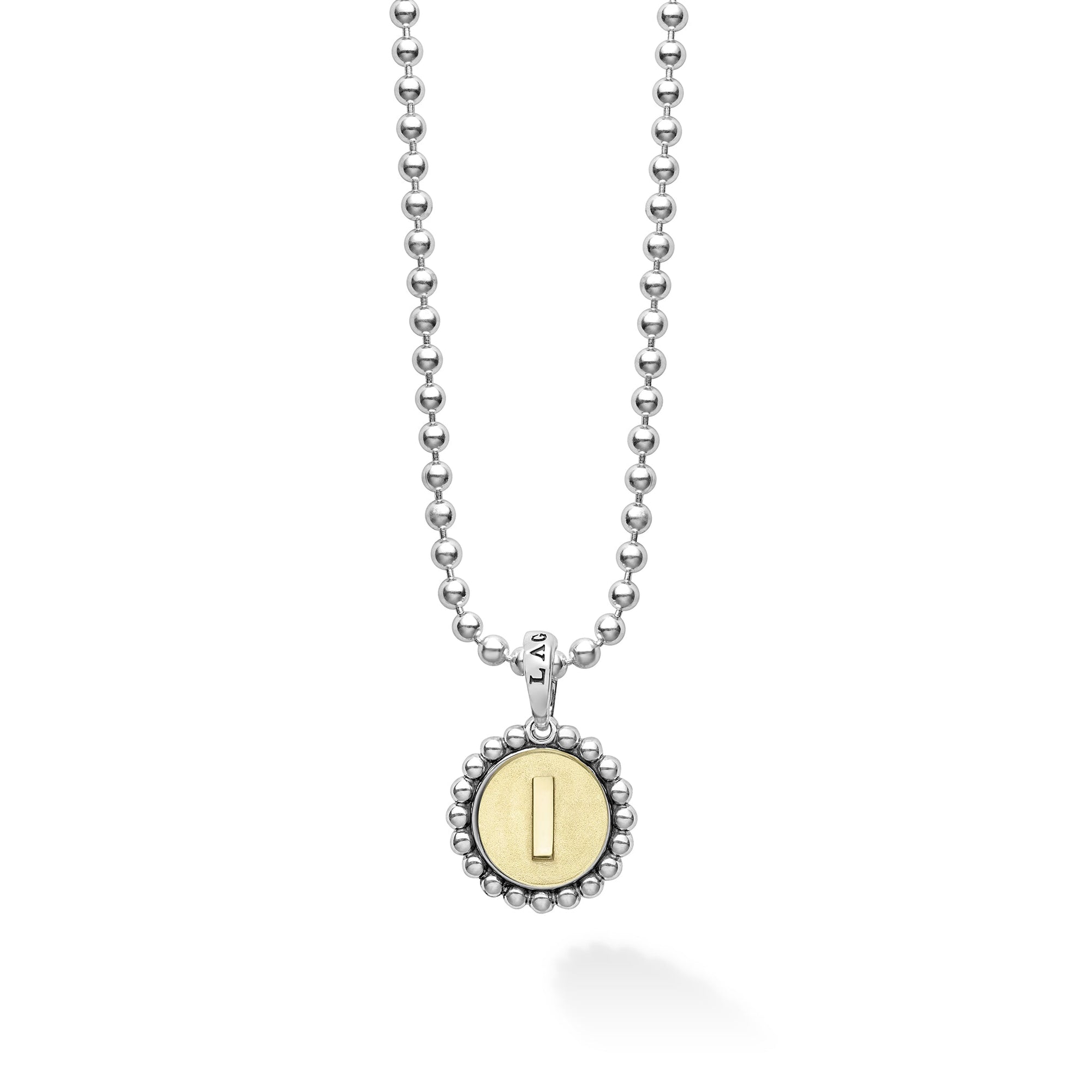 Our Signature Caviar sterling silver and 18K gold initial 'L' charm finished on a sterling silver ball chain necklace.