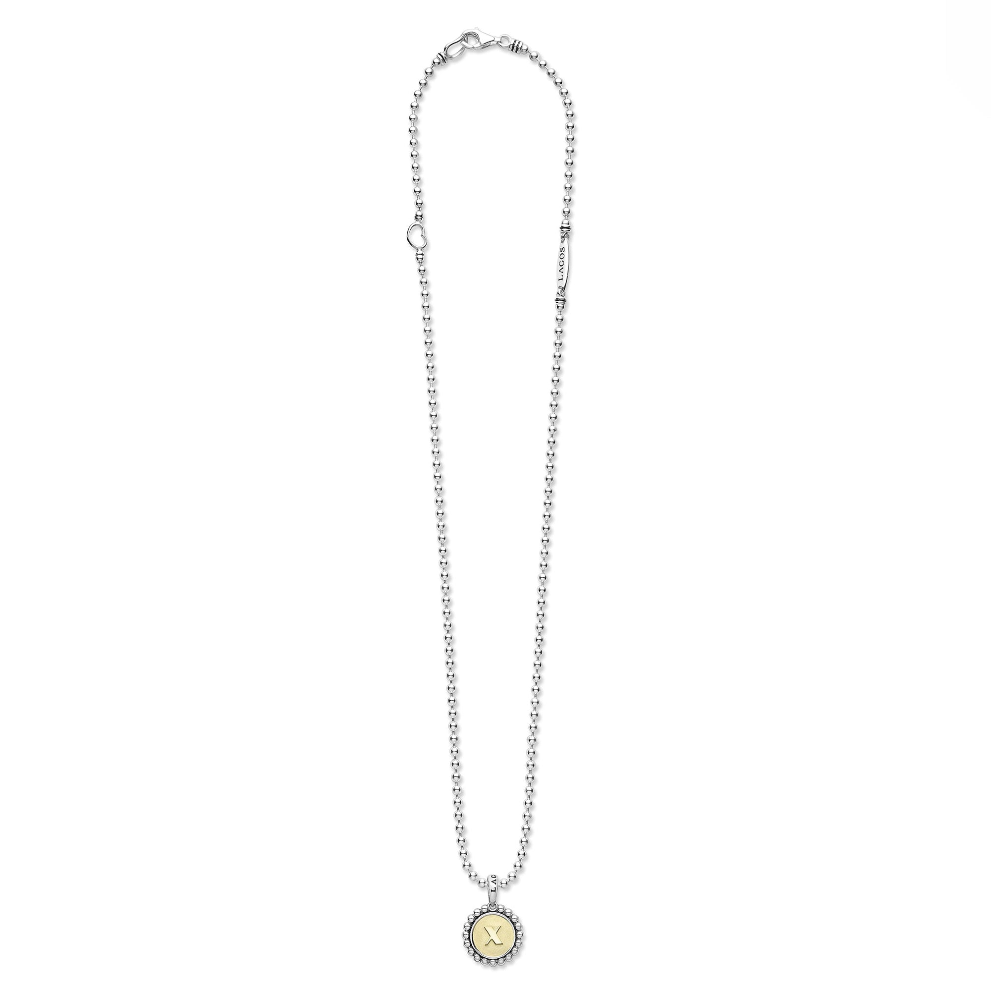Our Signature Caviar sterling silver and 18K gold initial 'X' charm finished on a sterling silver ball chain necklace.